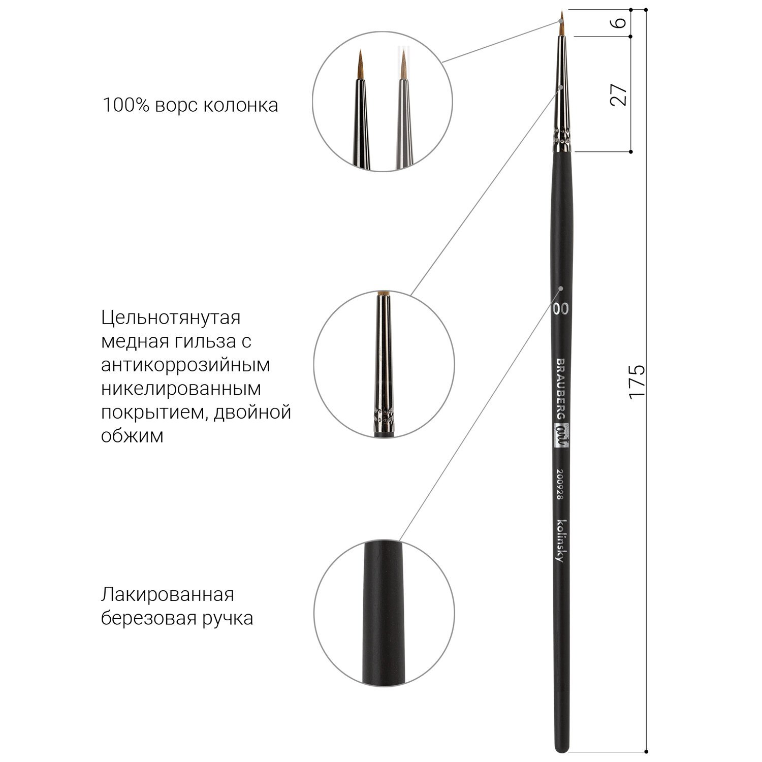 Кисть художественная проф. BRAUBERG ART CLASSIC, колонок, круглая, № 00, короткая ручка, 200928