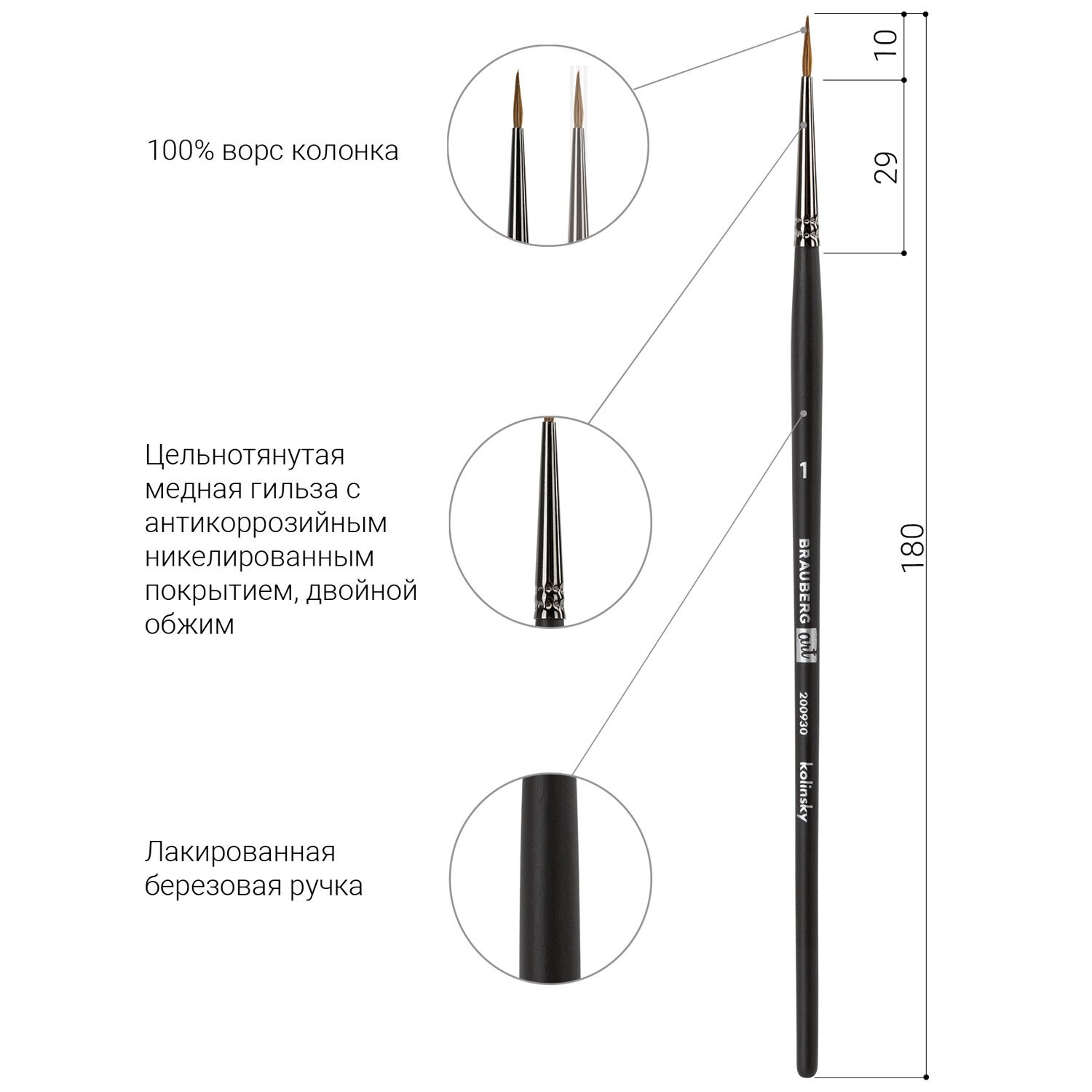 Кисть художественная проф. BRAUBERG ART CLASSIC, колонок, круглая, № 1, короткая ручка, 200930