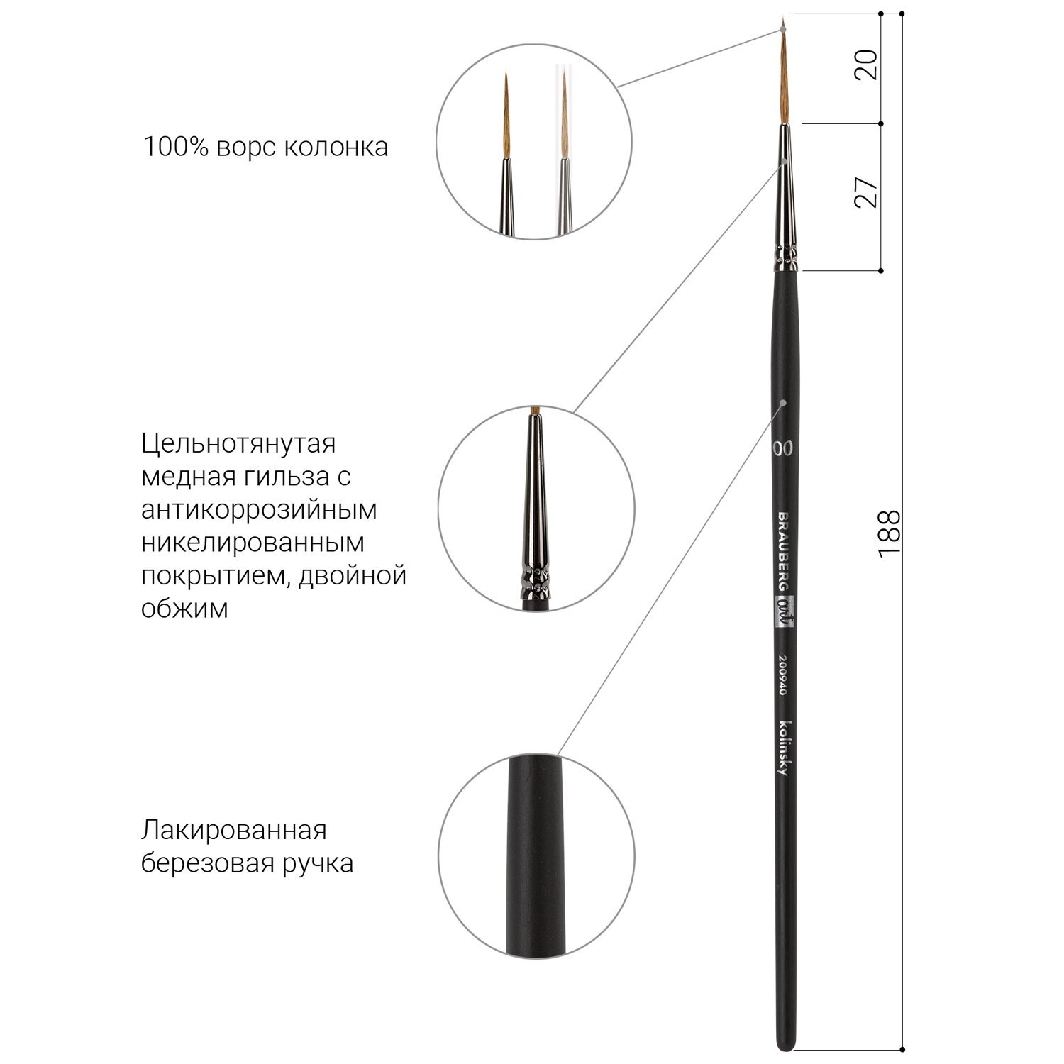 Кисть художественная проф. BRAUBERG ART CLASSIC, колонок, круглая, № 00, длинная ручка, 200920