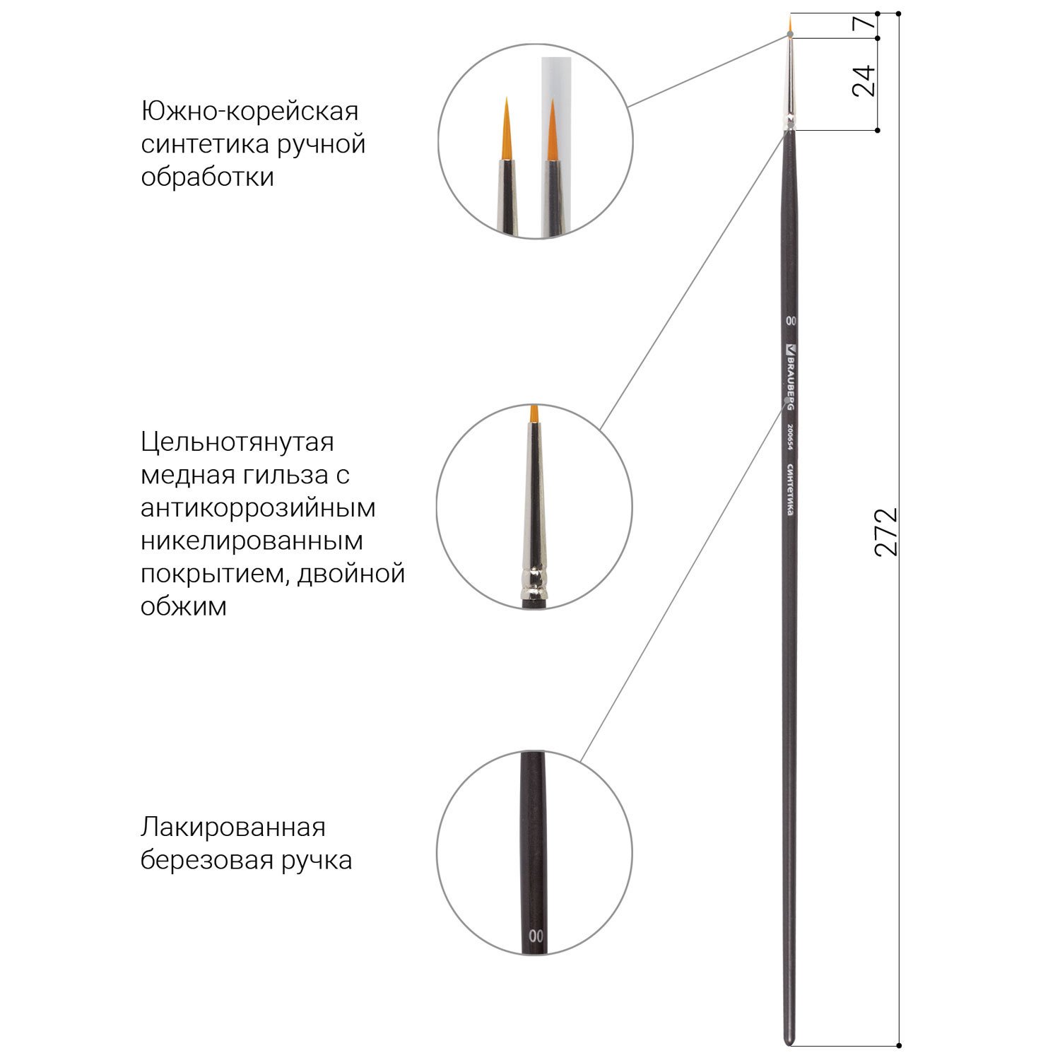 Художественная профессиональная синтетическая кисть BRAUBERG ART "CLASSIC" № 00 предназначена для работ густыми красками: гуашь, акрил, масло, темпера. Идеальна для водорастворимых масляных красок.