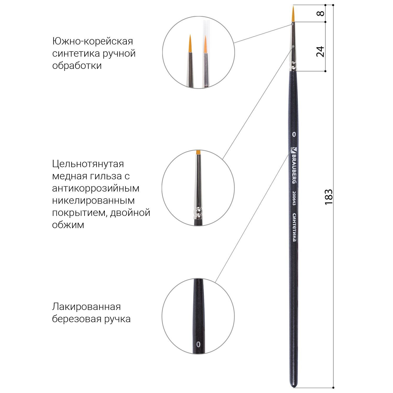 Художественная профессиональная синтетическая кисть BRAUBERG ART "CLASSIC" № 0 предназначена для работ густыми красками: гуашь, акрил, масло, темпера. Идеальна для водорастворимых масляных красок.