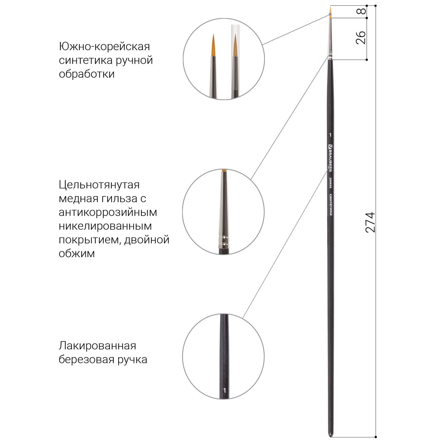 Кисть художественная проф. BRAUBERG ART CLASSIC, синтетика жесткая, круглая, № 1, длинная ручка, 200656