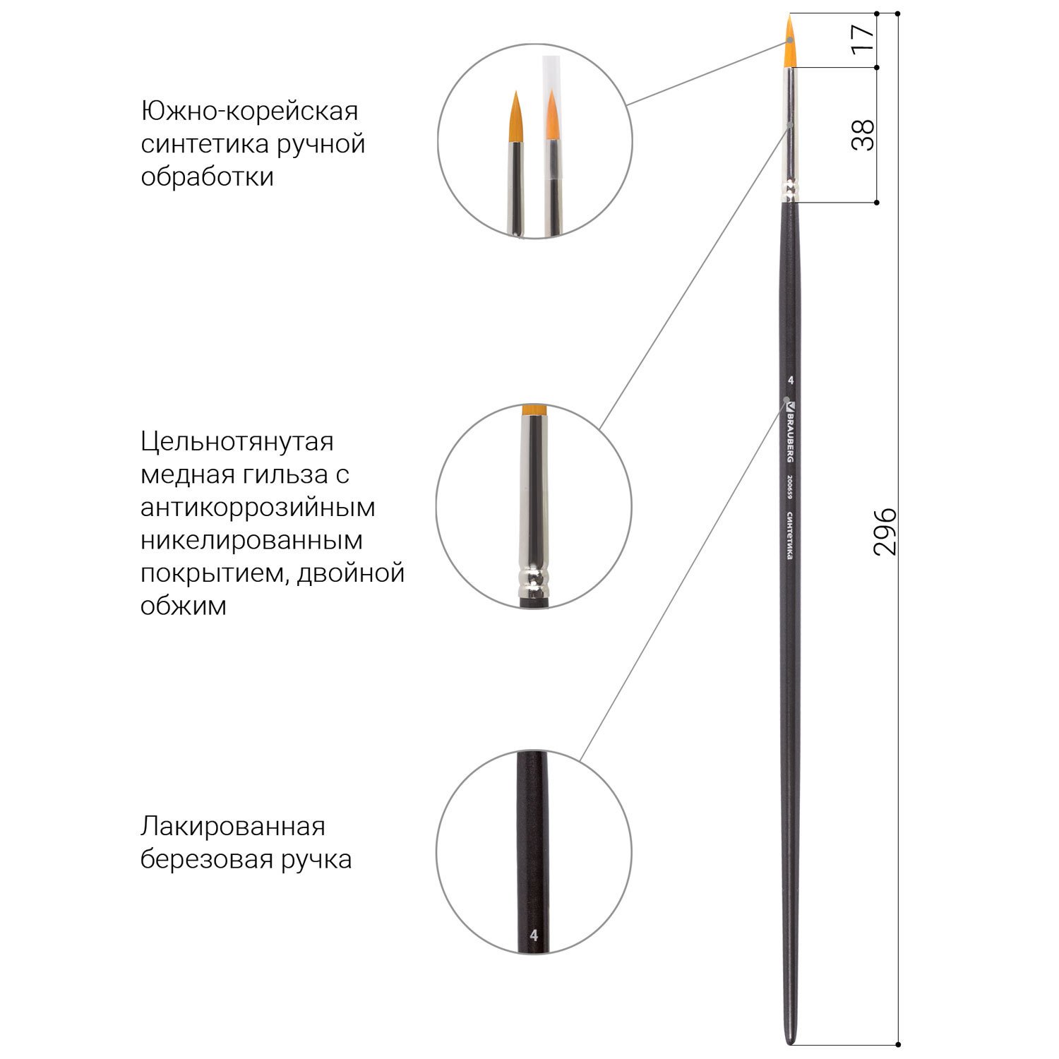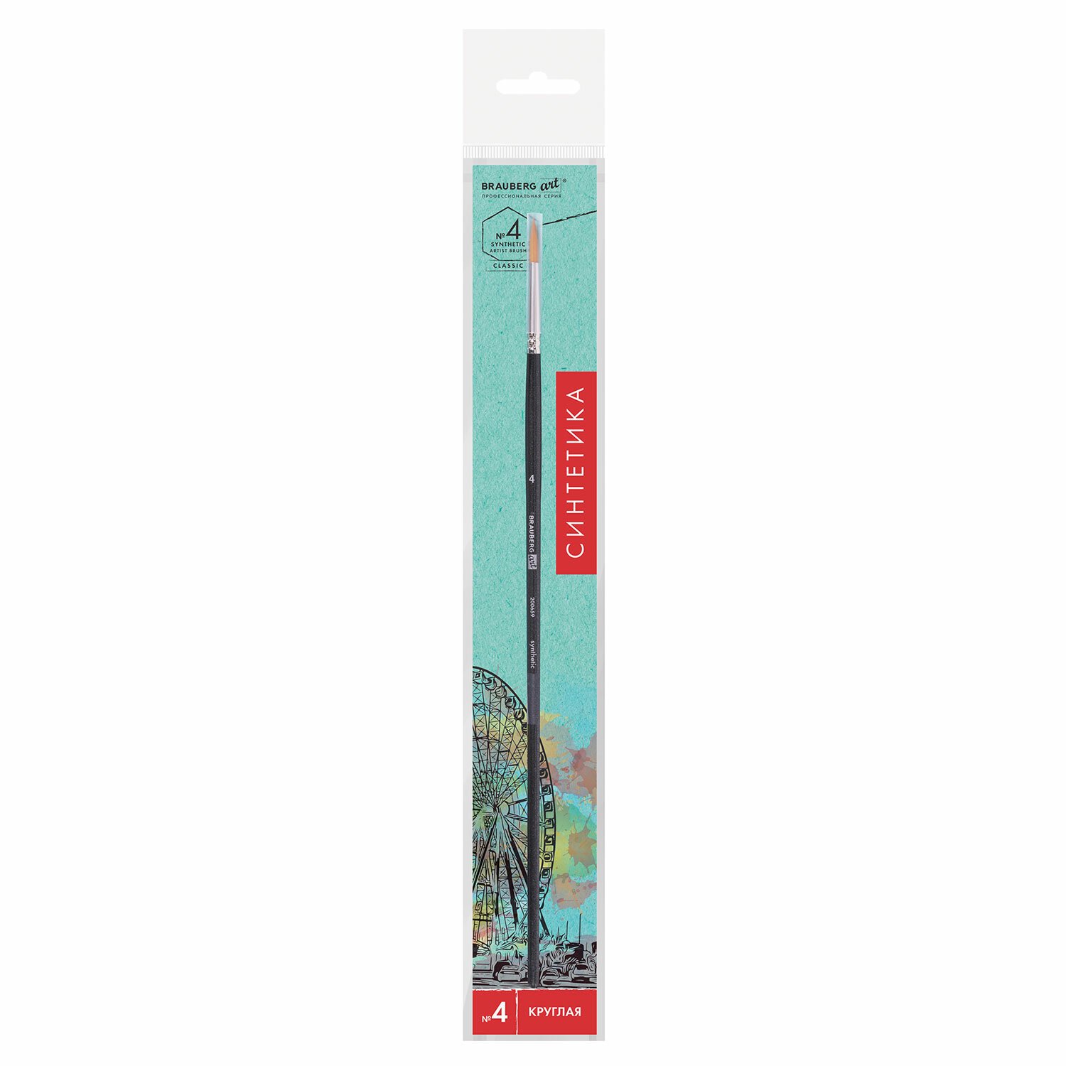 Кисть художественная проф. BRAUBERG ART CLASSIC, синтетика жесткая, круглая, № 4, длинная ручка, 200659