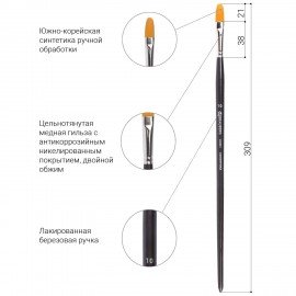 Кисть художественная проф. BRAUBERG ART CLASSIC, синтетика мягкая под колонок, плоск, № 16, кор руч, 200703