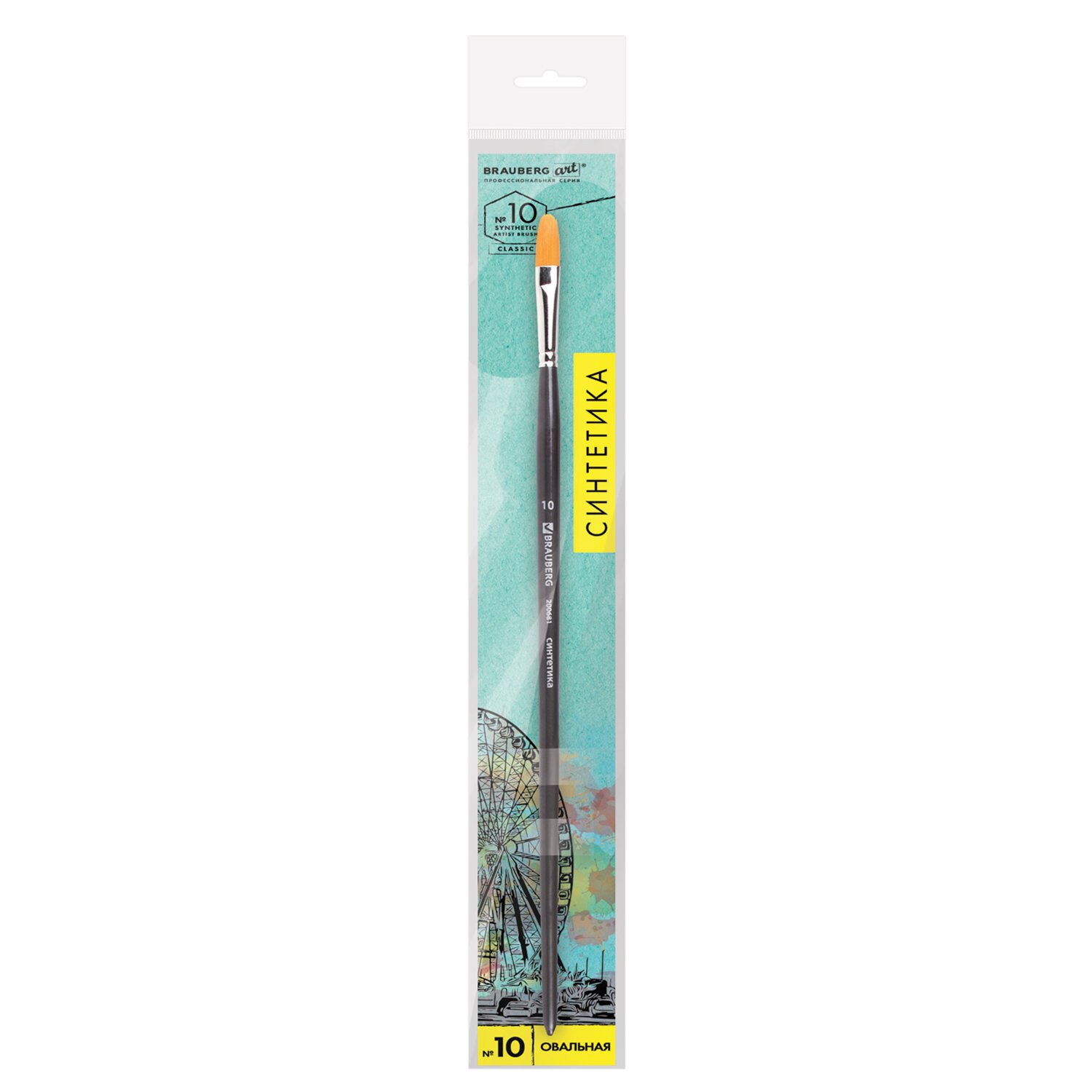 Кисть художественная проф. BRAUBERG ART CLASSIC, синтетика жесткая, овальная, № 10, длинная ручка, 200681
