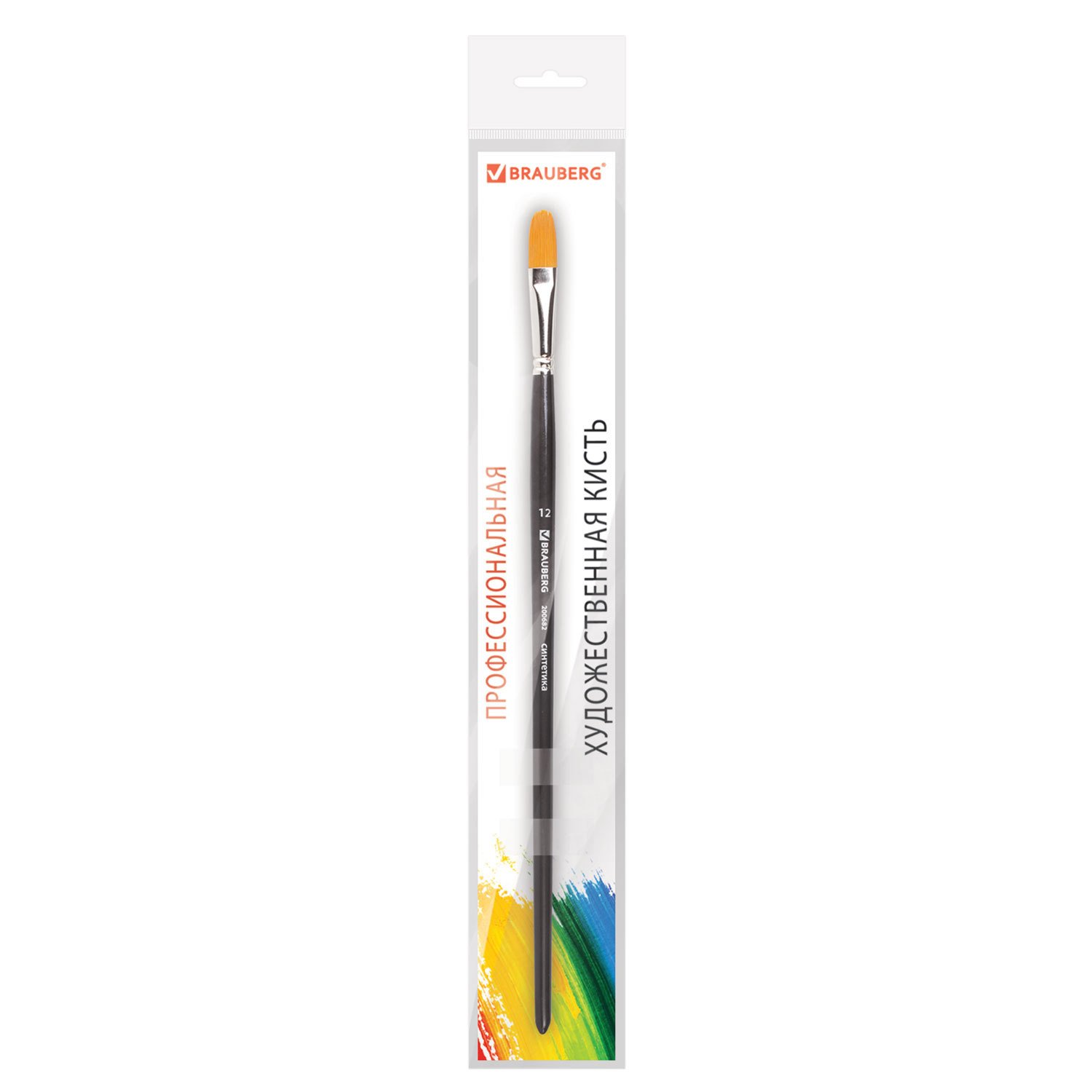 Кисть художественная проф. BRAUBERG ART CLASSIC, синтетика жесткая, овальная, № 12, длинная ручка, 200682