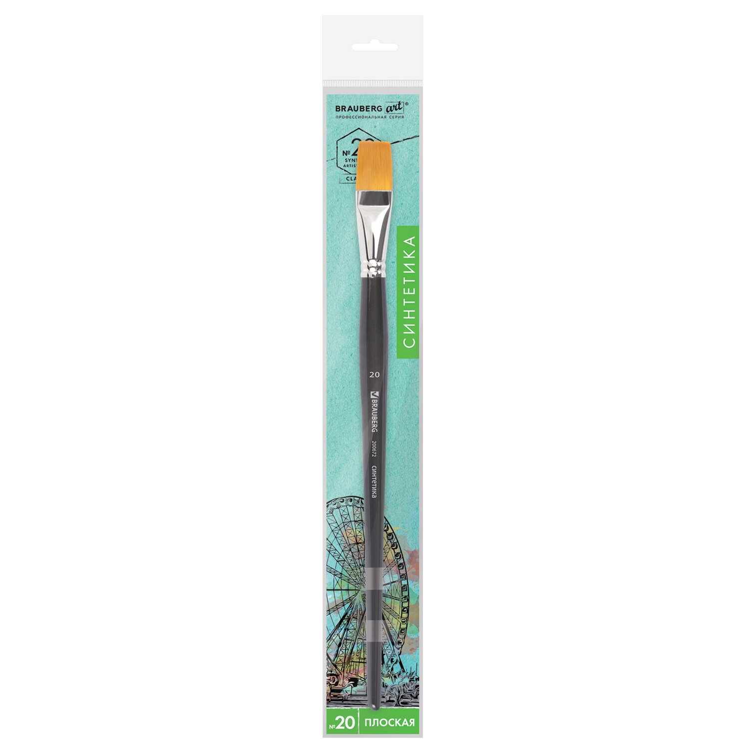 Кисть художественная проф. BRAUBERG ART CLASSIC, синтетика жесткая, плоская, № 20, длинная ручка, 200672
