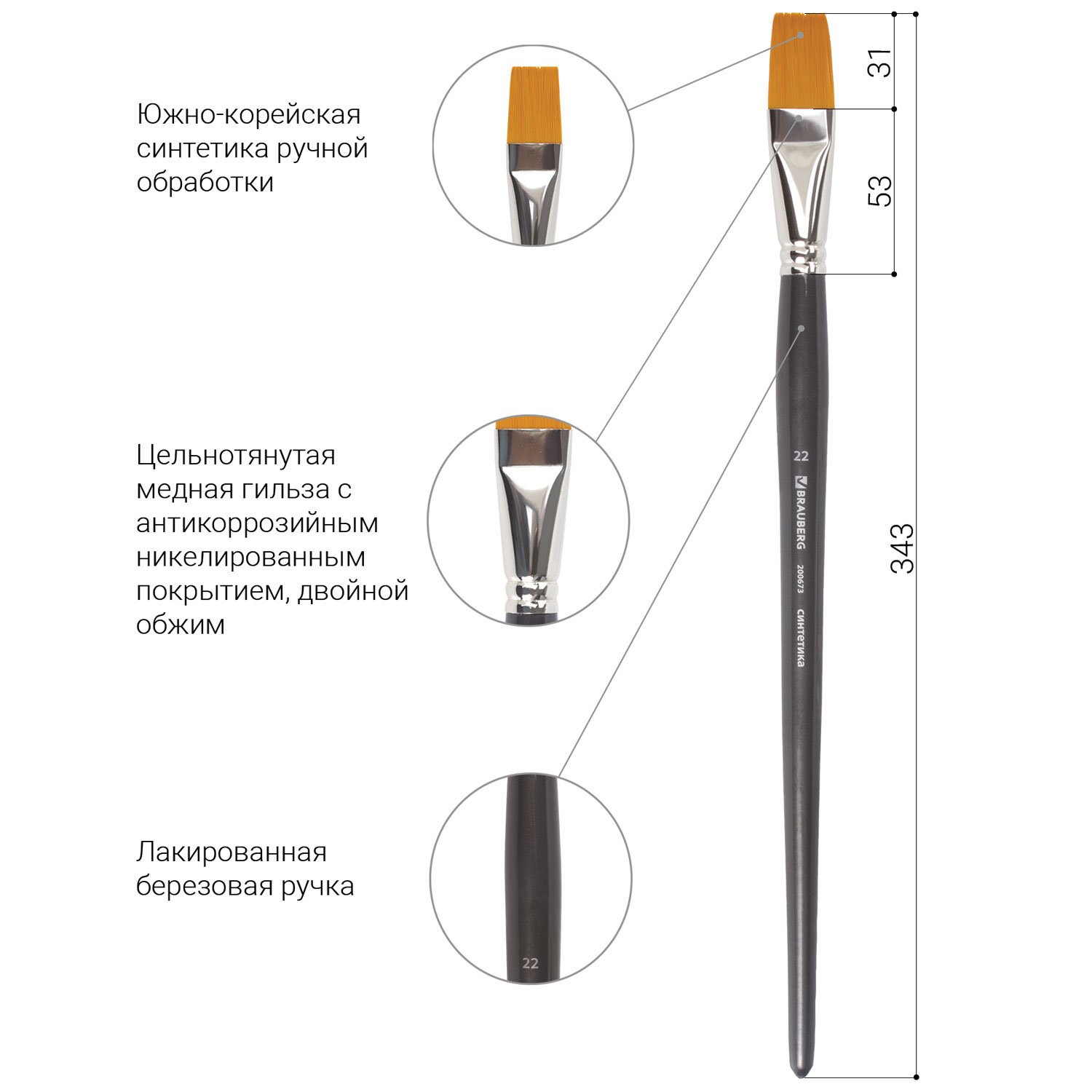 Художественная профессиональная синтетическая кисть BRAUBERG ART "CLASSIC" № 22 предназначена для работ густыми красками: гуашь, акрил, масло, темпера. Идеальна для водорастворимых масляных красок.
