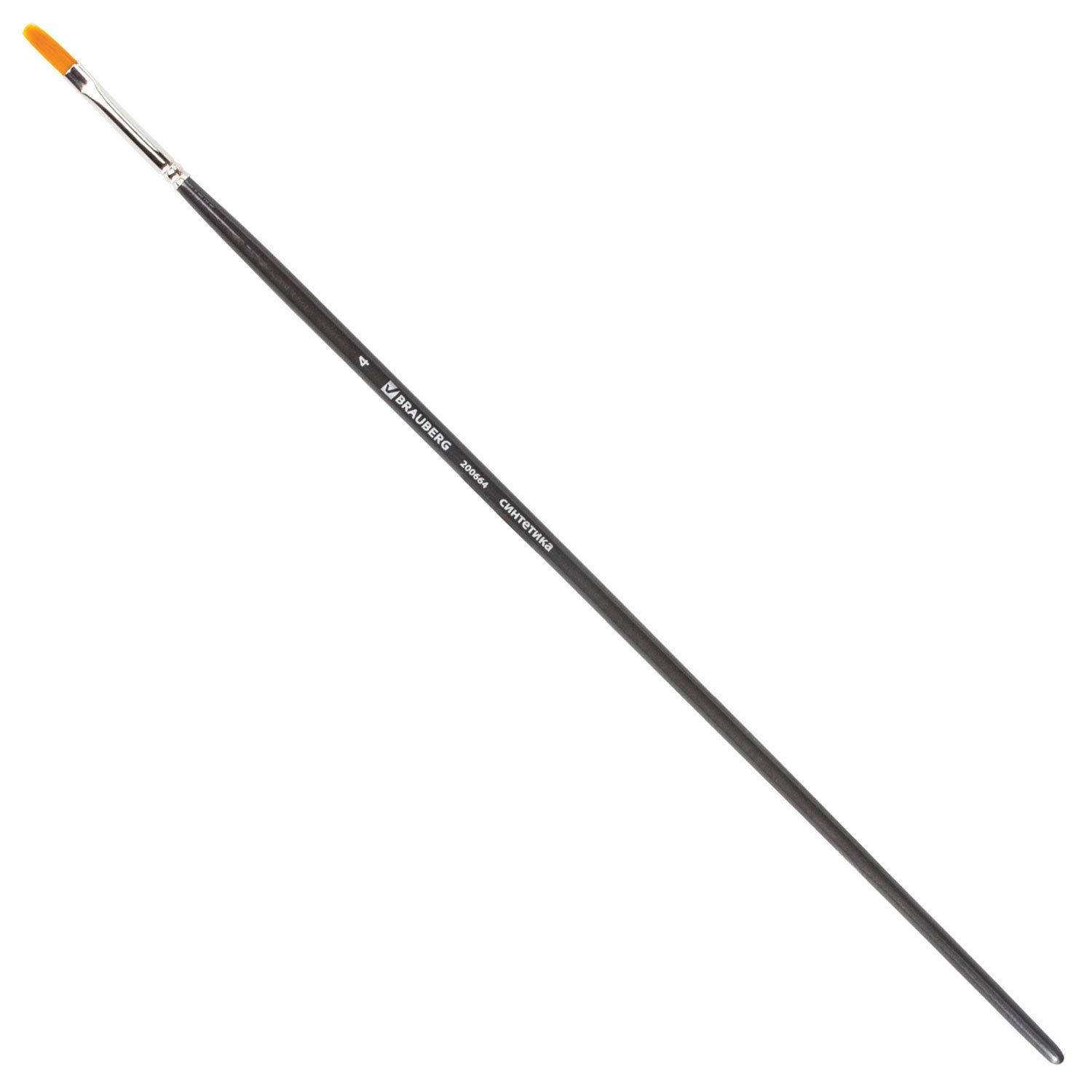 Кисть художественная проф. BRAUBERG ART CLASSIC, синтетика жесткая, плоская, № 4, длинная ручка, 200664