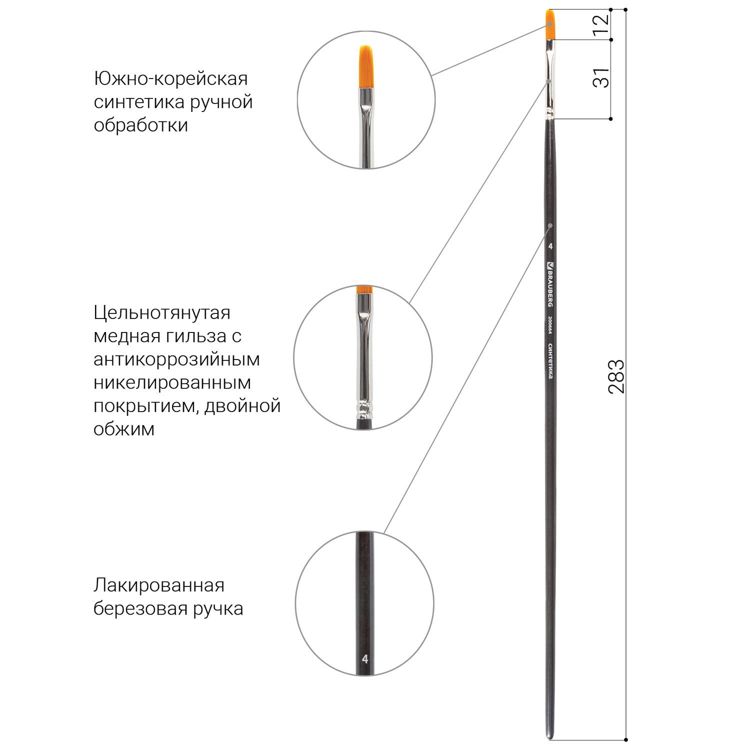 Художественная профессиональная синтетическая кисть BRAUBERG ART "CLASSIC" № 4 предназначена для работ густыми красками: гуашь, акрил, масло, темпера. Идеальна для водорастворимых масляных красок.
