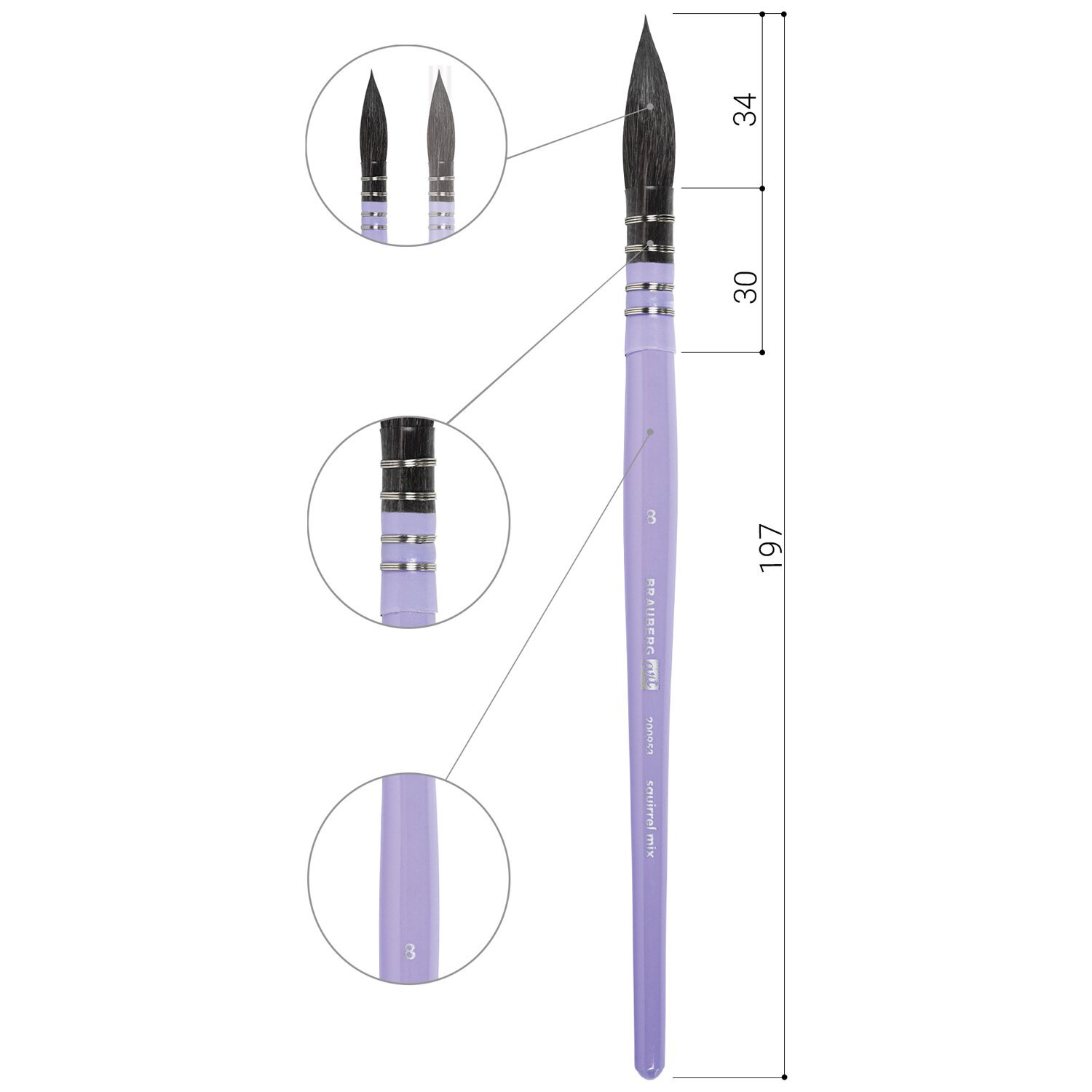 Кисть художественная профессиональная, белка, микс, круглая, №8, BRAUBERG ART CLASSIC, 200953