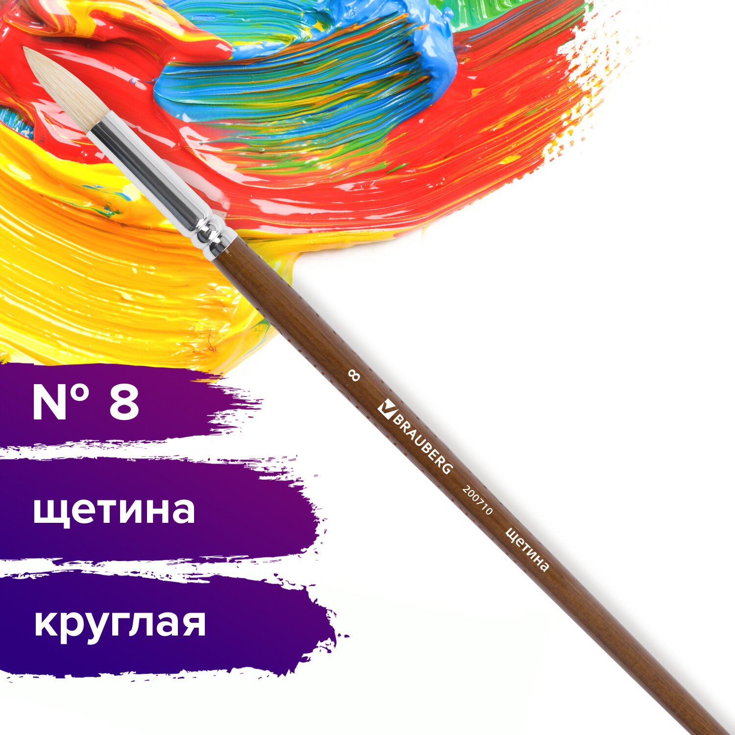 Кисть художественная профессиональная BRAUBERG ART CLASSIC, щетина, круглая, № 8, длинная ручка, 200710