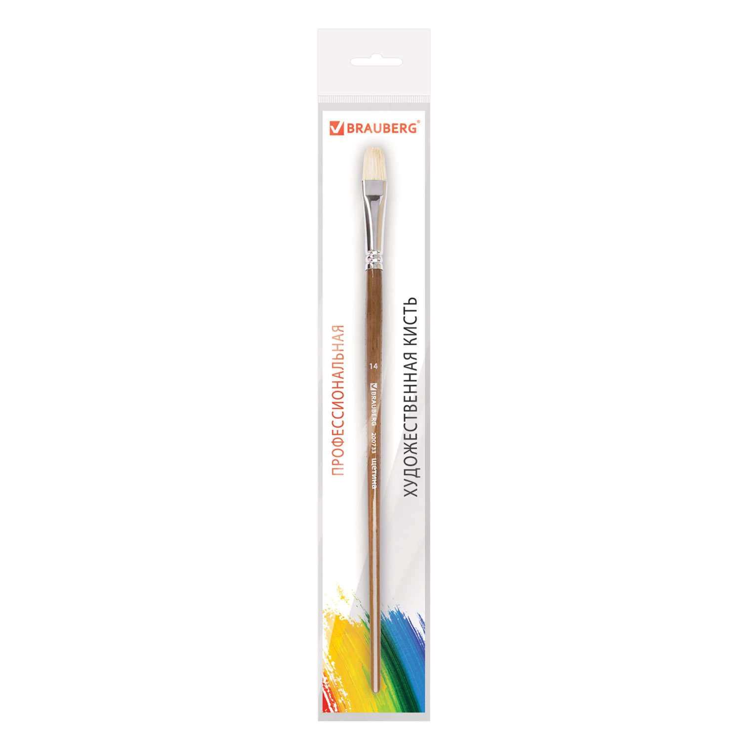 Кисть художественная профессиональная BRAUBERG ART CLASSIC, щетина, овальная, № 14, длинная ручка, 200733