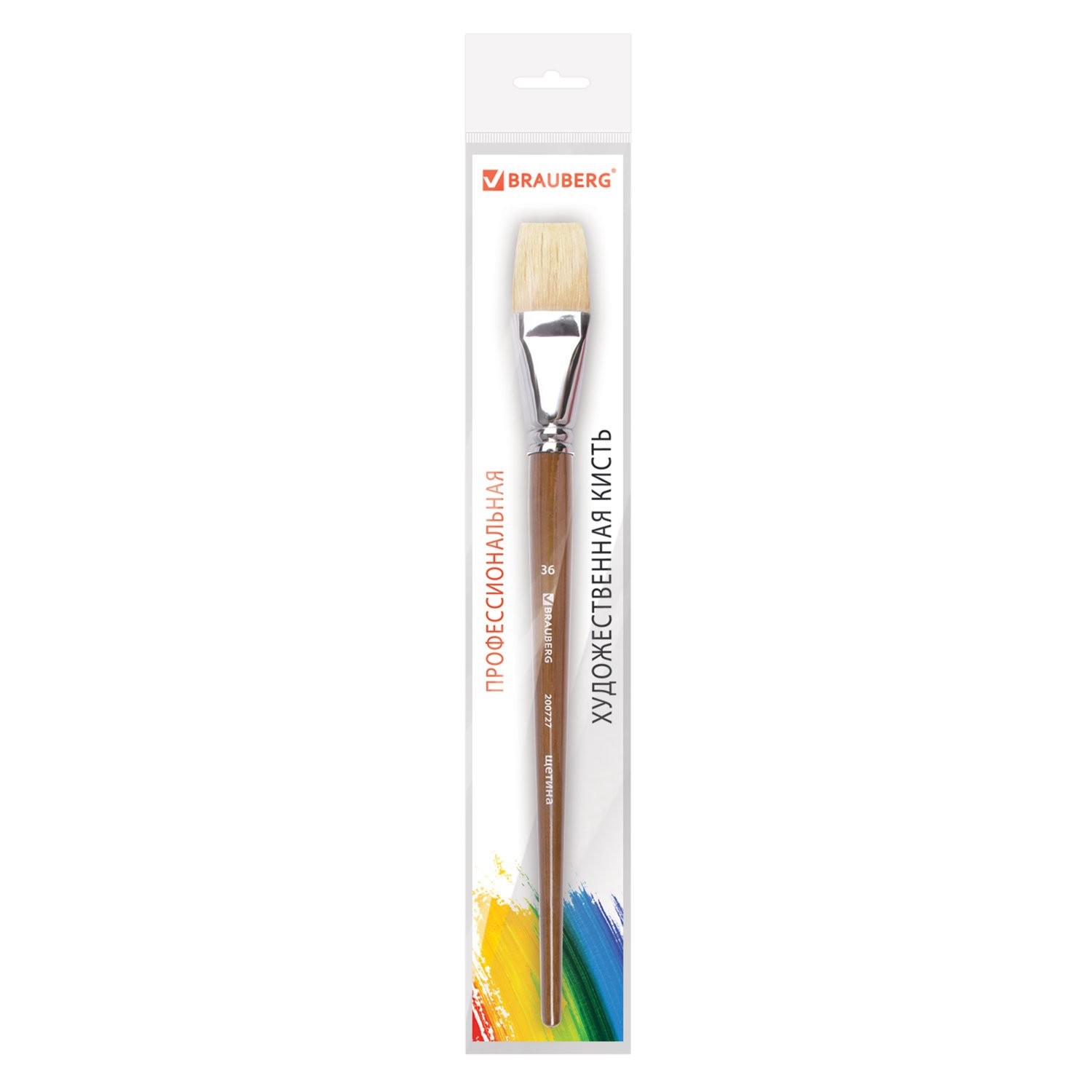 Кисть художественная профессиональная BRAUBERG ART CLASSIC, щетина, плоская, № 36, длинная ручка, 200727