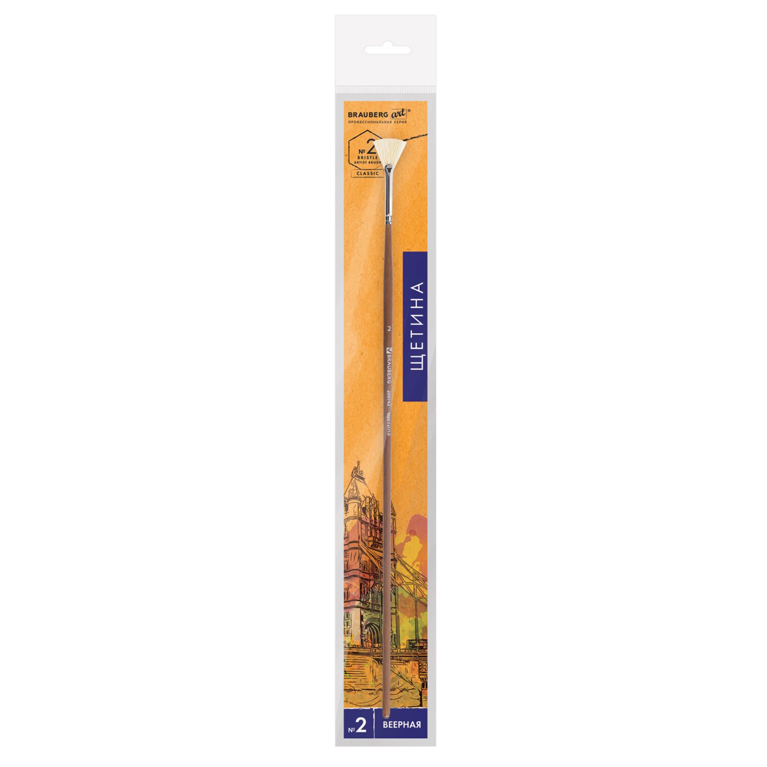 Кисть художественная профессиональная BRAUBERG ART CLASSIC, щетина, веерная, № 2, длинная ручка, 200742