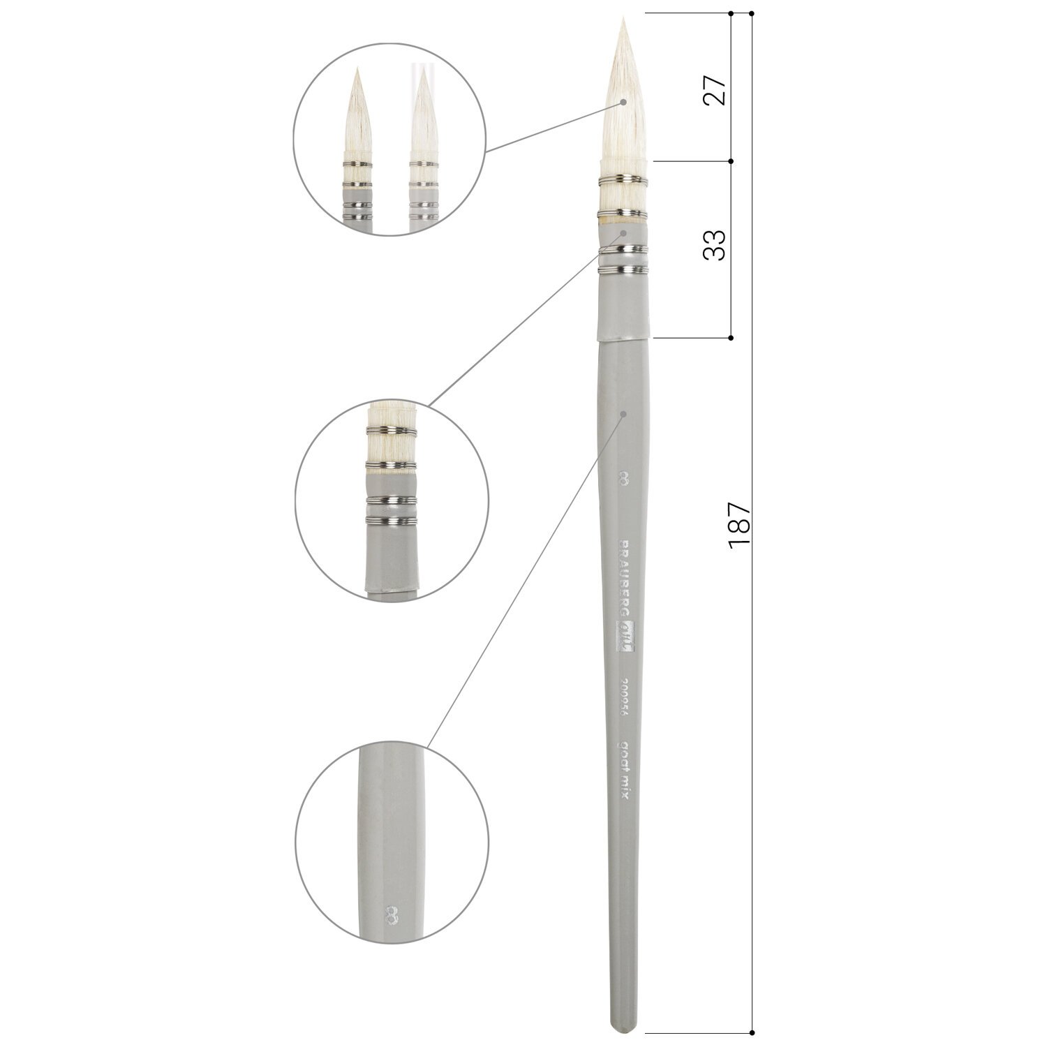 Кисть художественная проф. BRAUBERG ART CLASSIC, колонок, круглая, № 3, длинная ручка, 200924