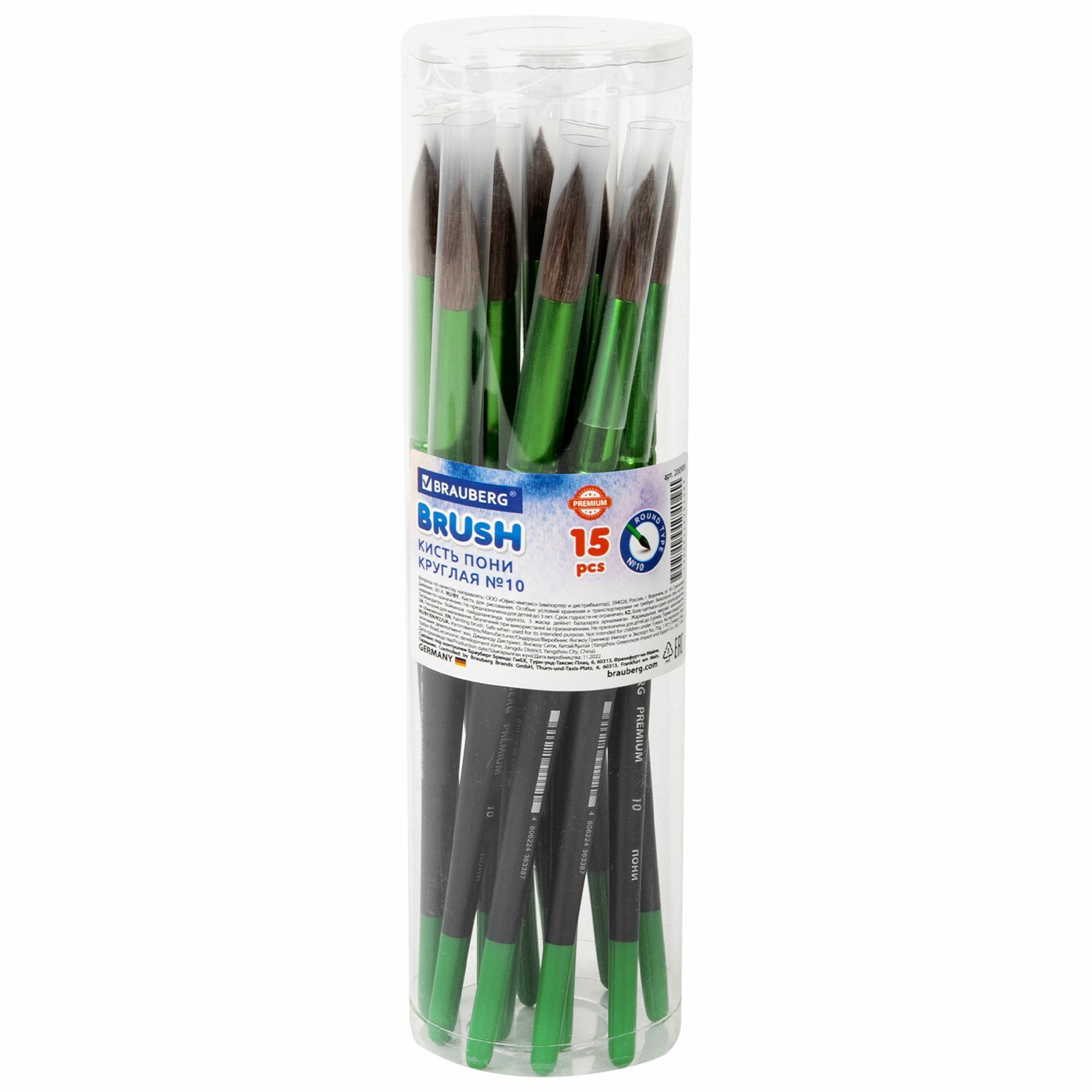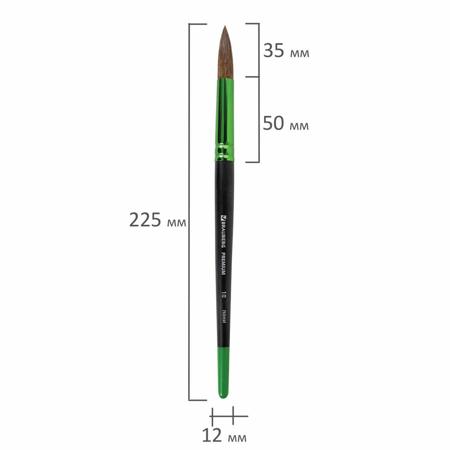 Кисть из ворса пони № 10, BRAUBERG PREMIUM, 200989