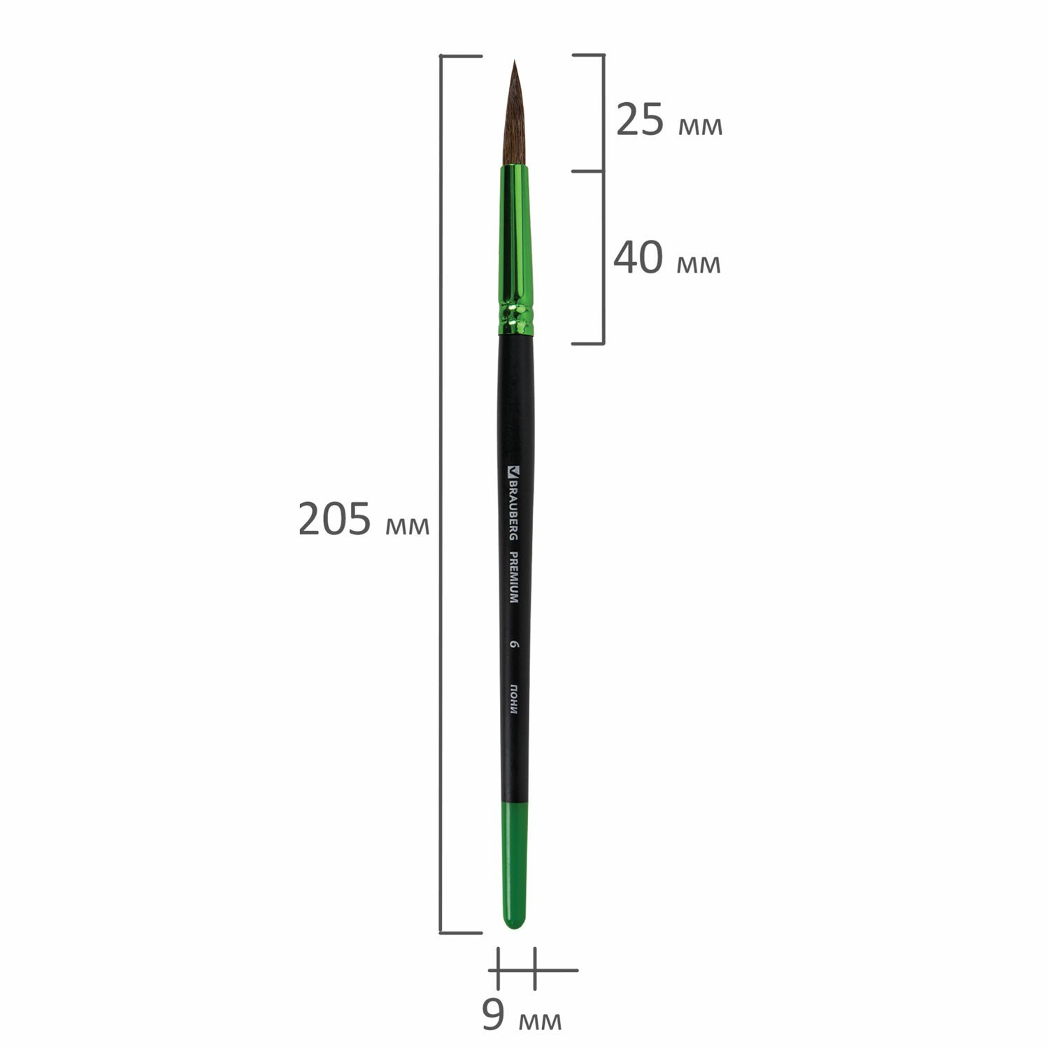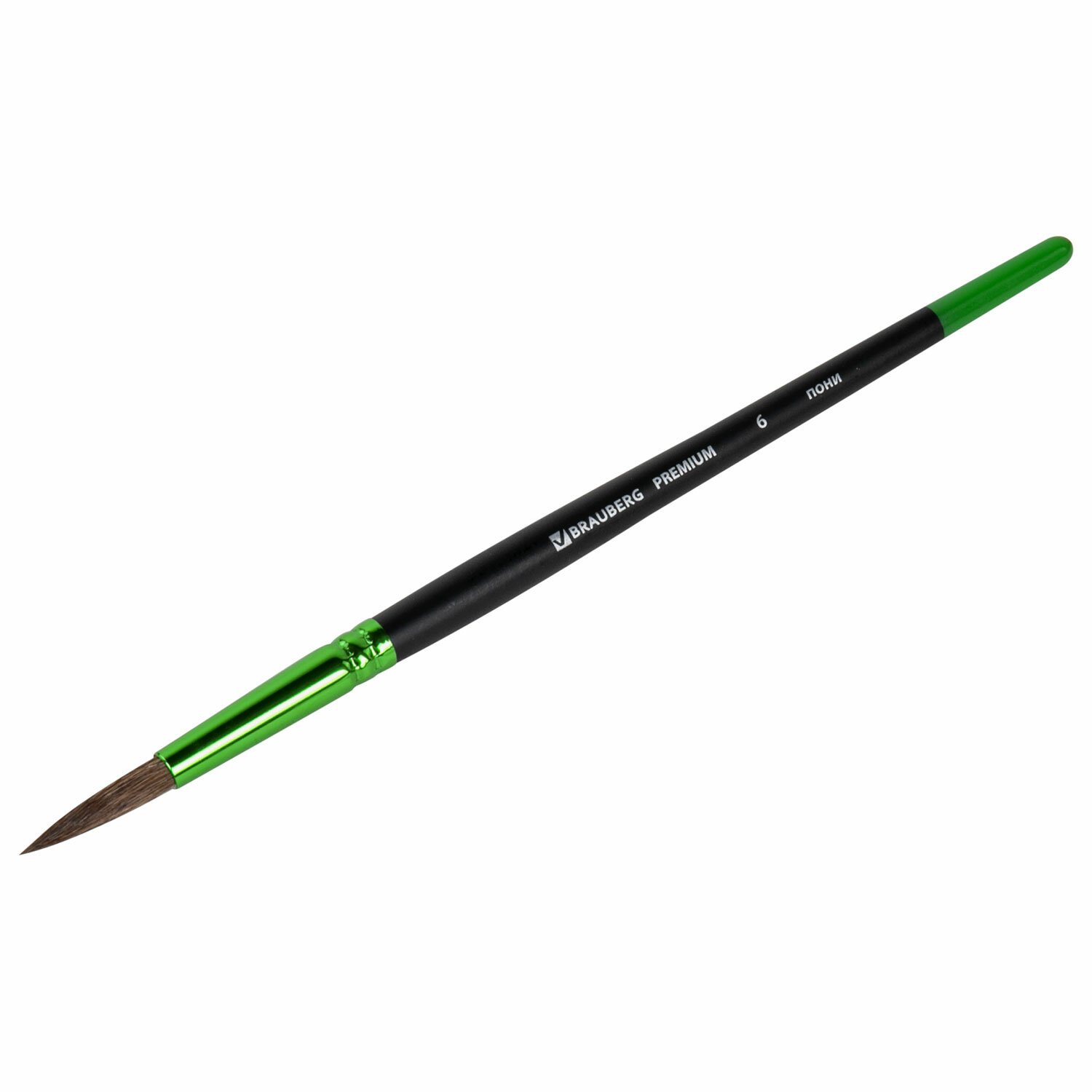 Кисть из ворса пони № 6, BRAUBERG PREMIUM, 200985