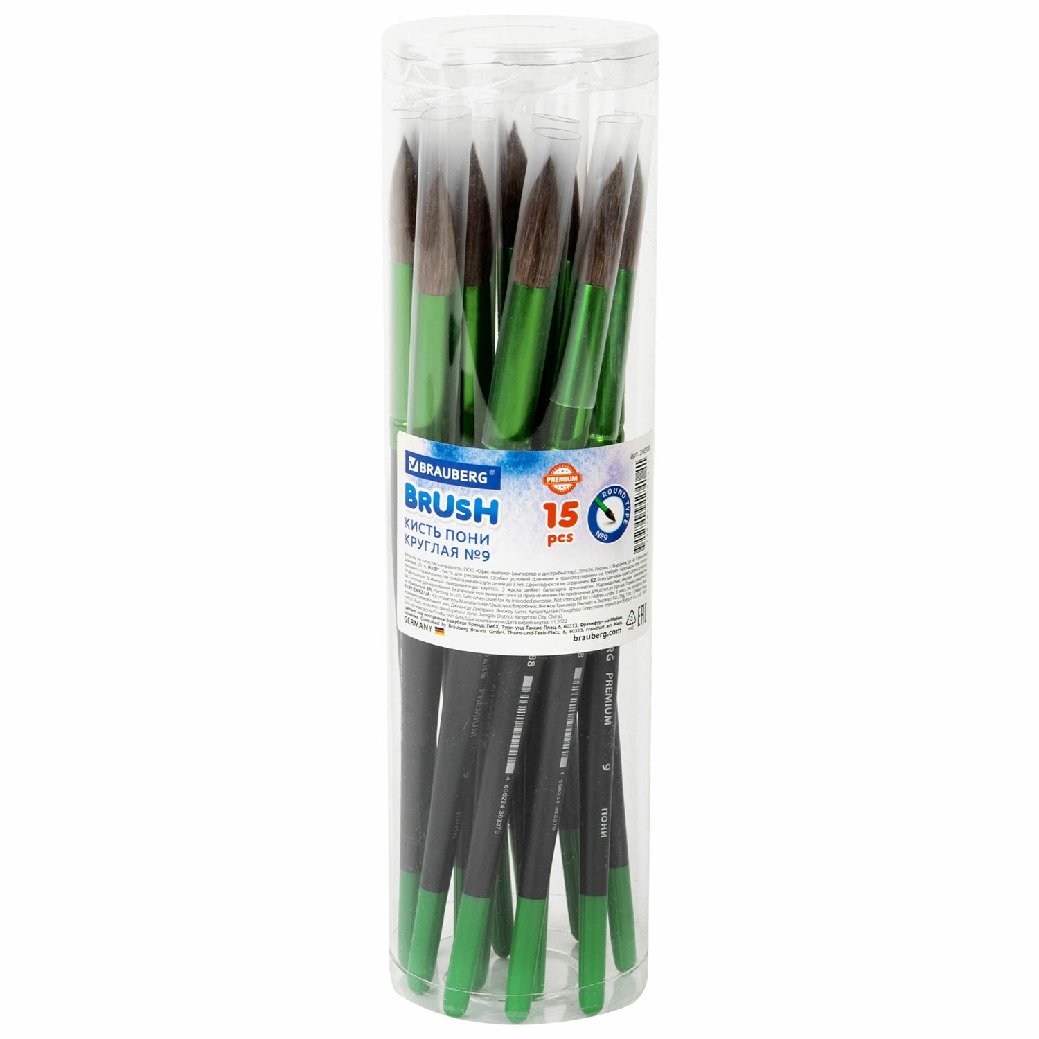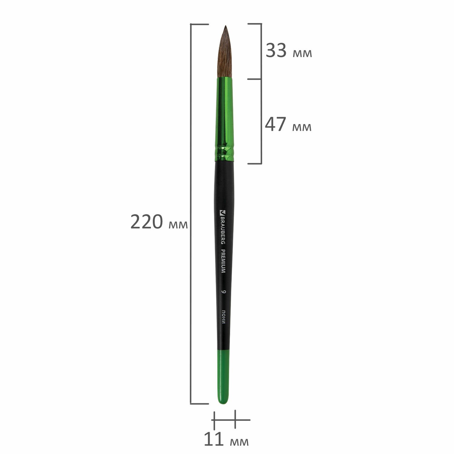 Кисть из ворса пони № 9, BRAUBERG PREMIUM, 200988