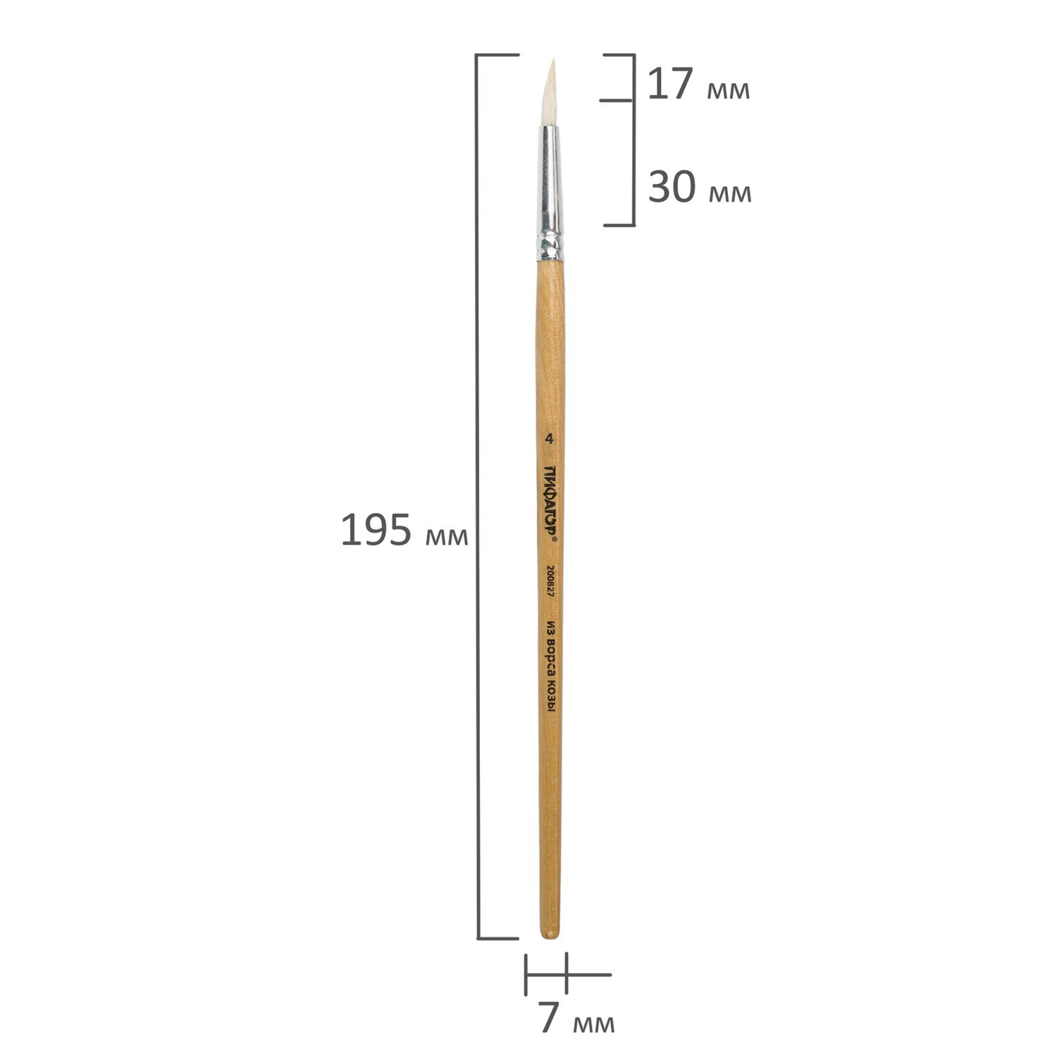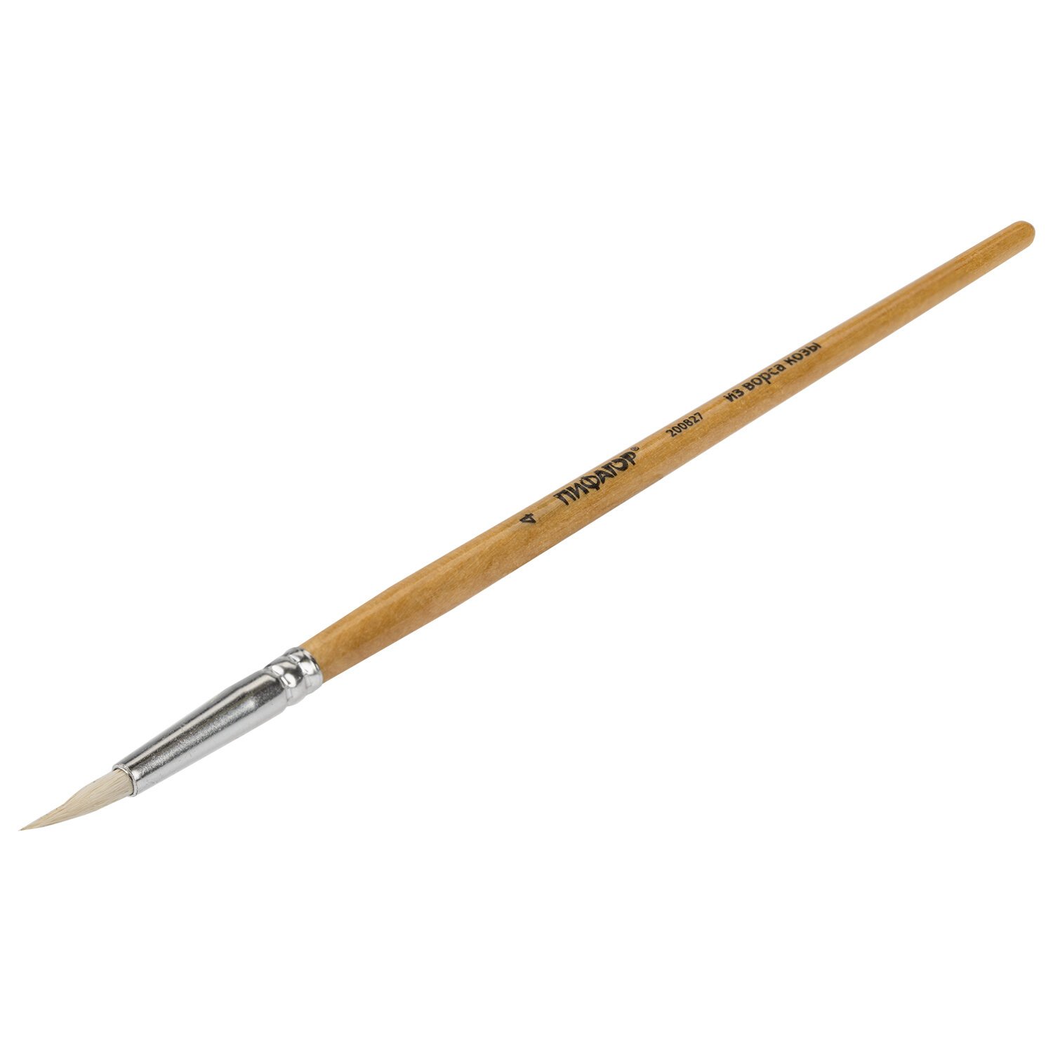 Кисть ПИФАГОР, КОЗА, круглая, № 4, деревянная лакированная ручка, с колпачком, 200827