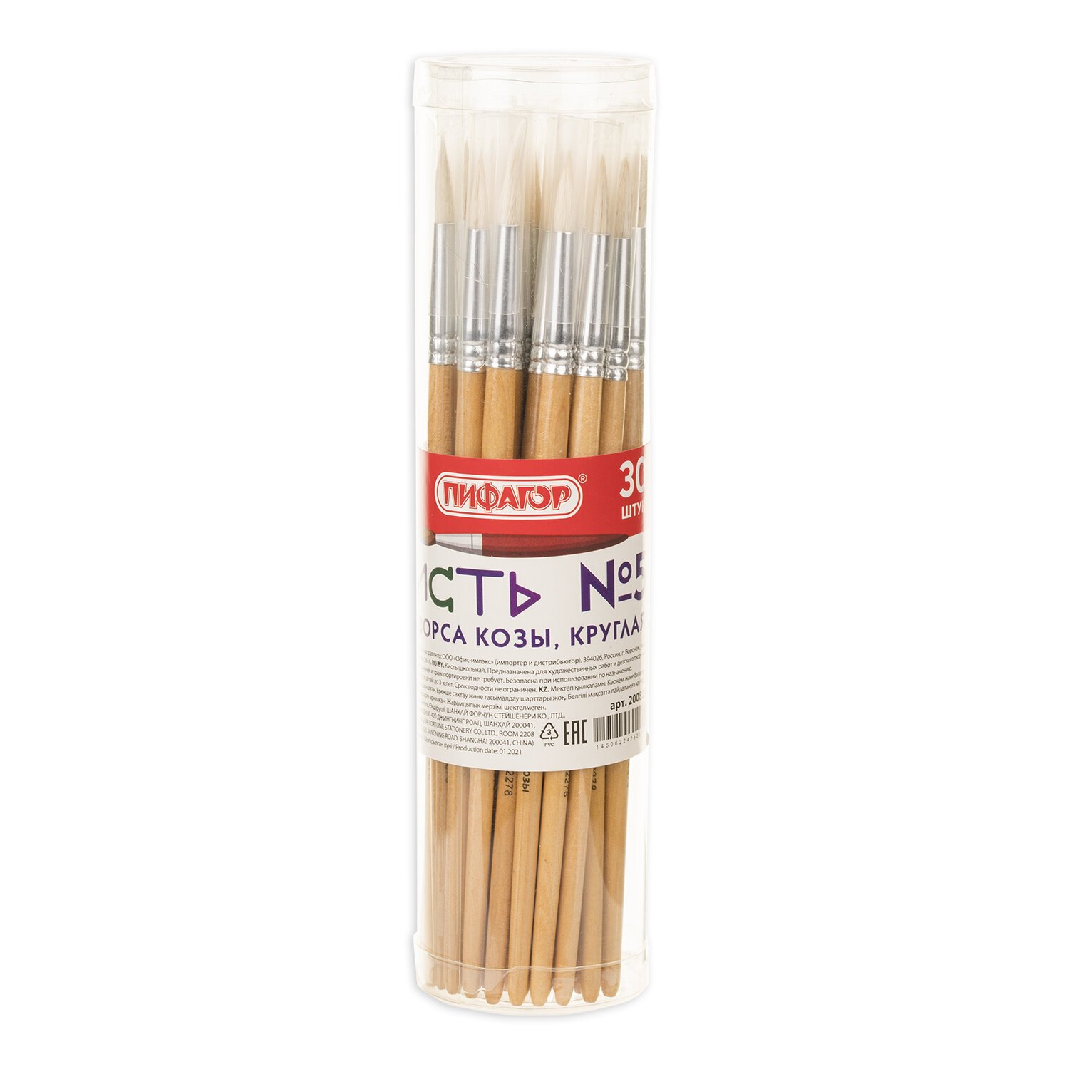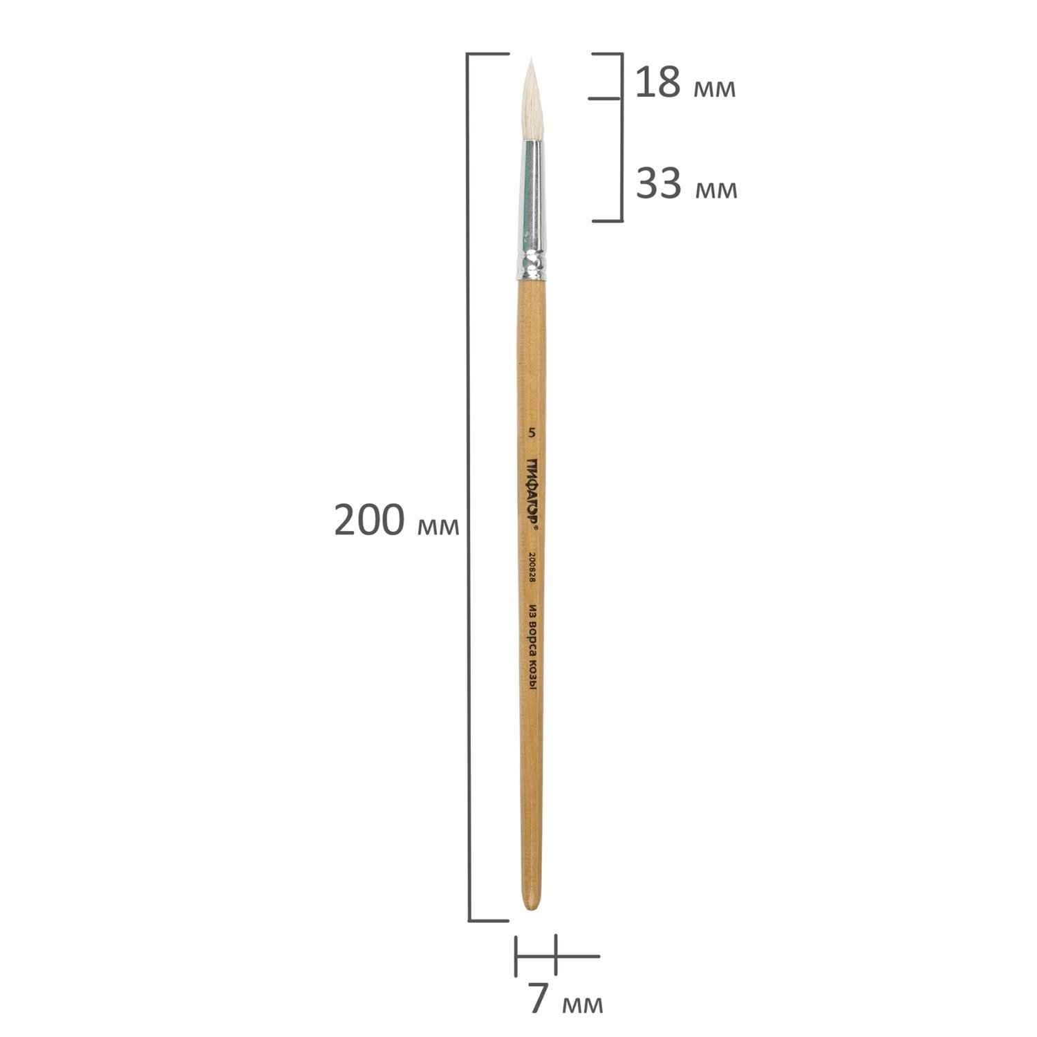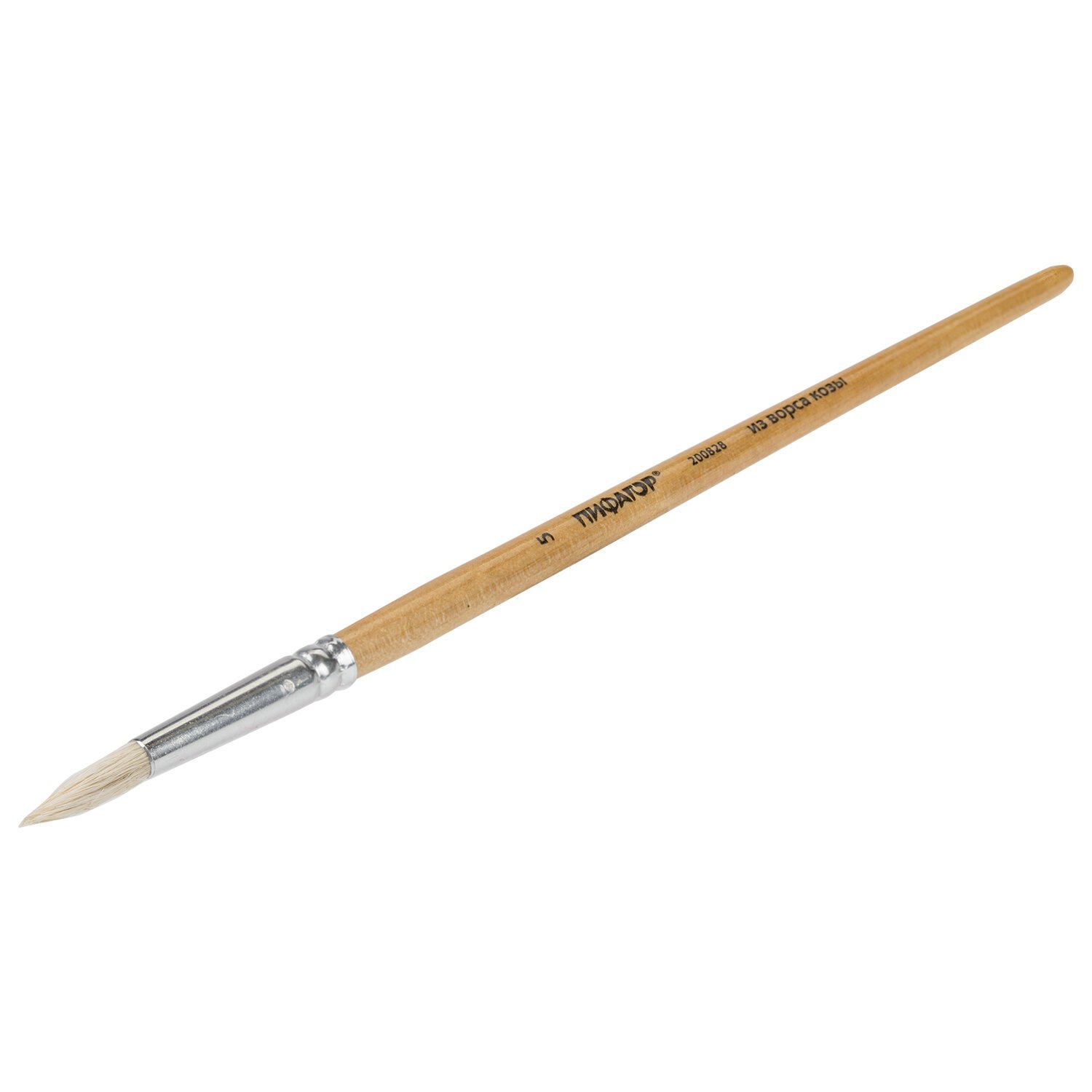 Кисть ПИФАГОР, КОЗА, круглая, № 5, деревянная лакированная ручка, с колпачком, 200828