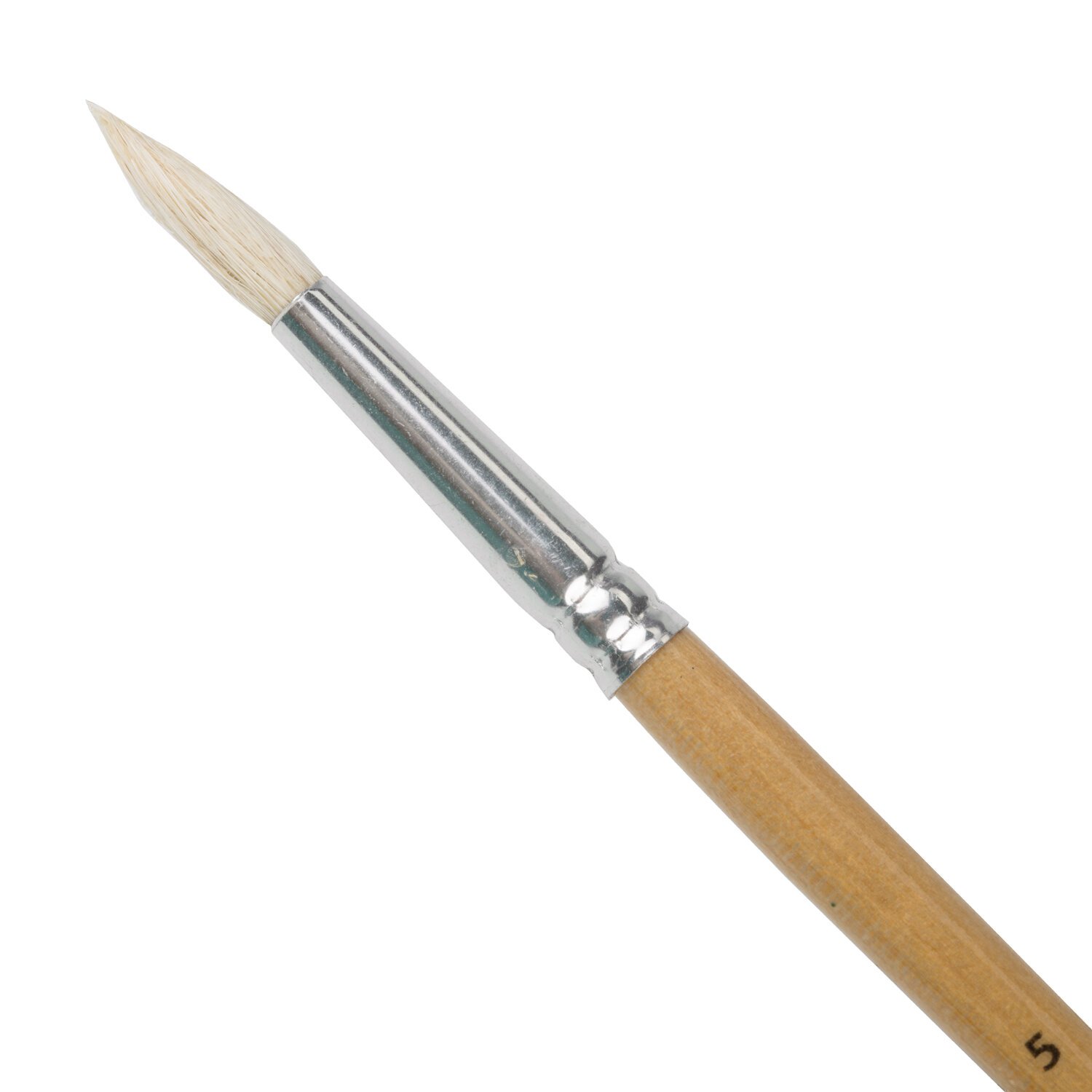 Кисть из волоса козы имеет длинный, мягкий и упругий ворс, хорошо держит краску. Кисть № 5 позволит прорисовывать детали и делать крупные мазки. Деревянную лакированную рукоятку кисти удобно держать в руке.