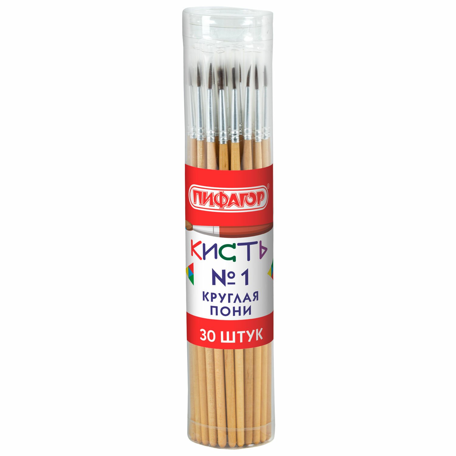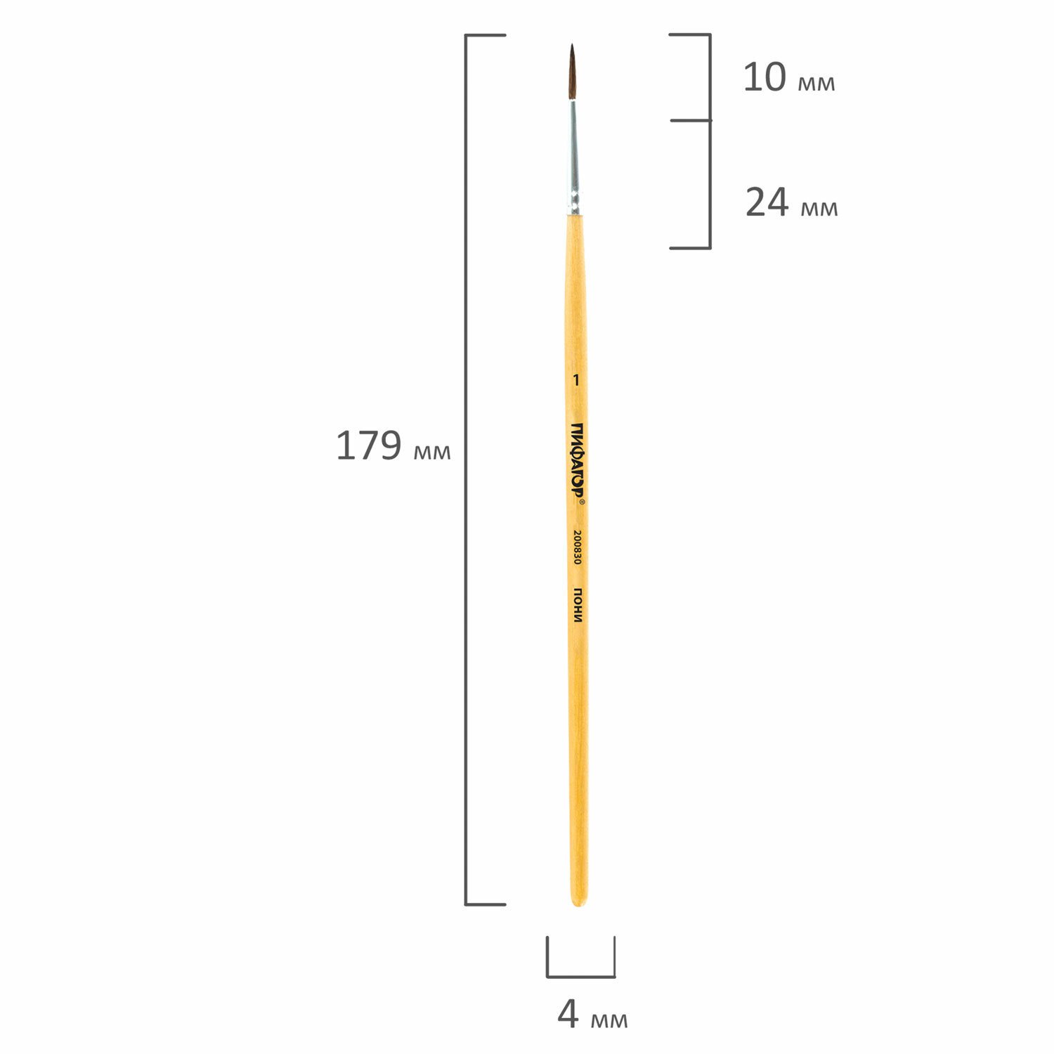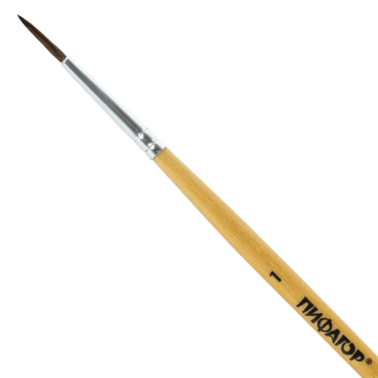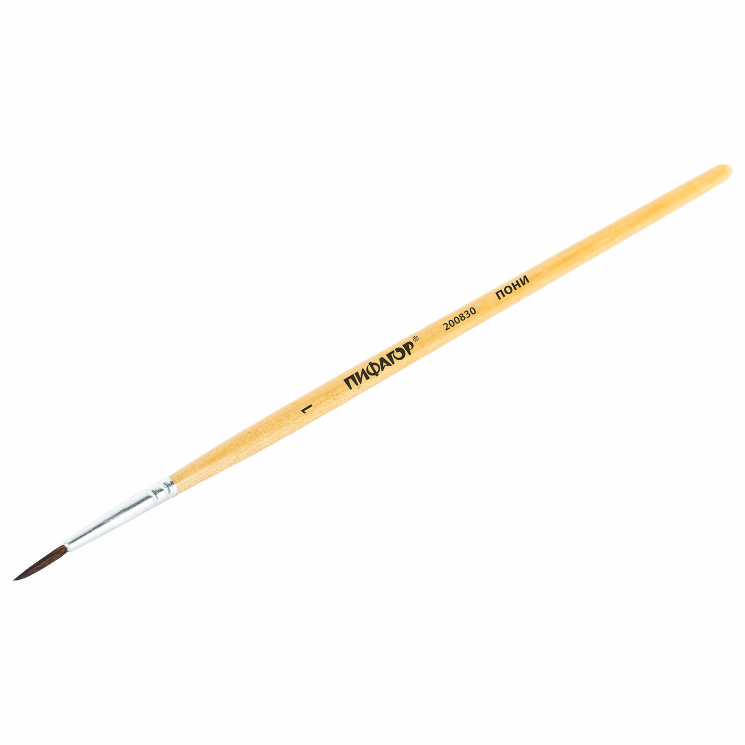 Кисть ПИФАГОР, ПОНИ, круглая, № 1, деревянная лакированная ручка, с колпачком, 200830