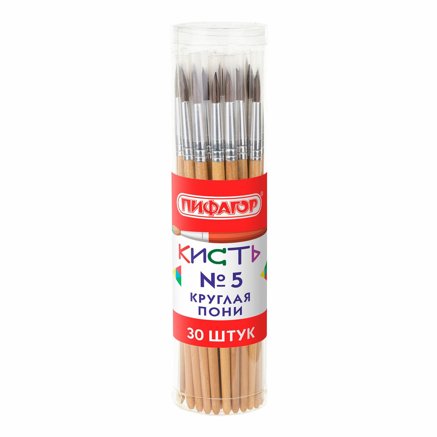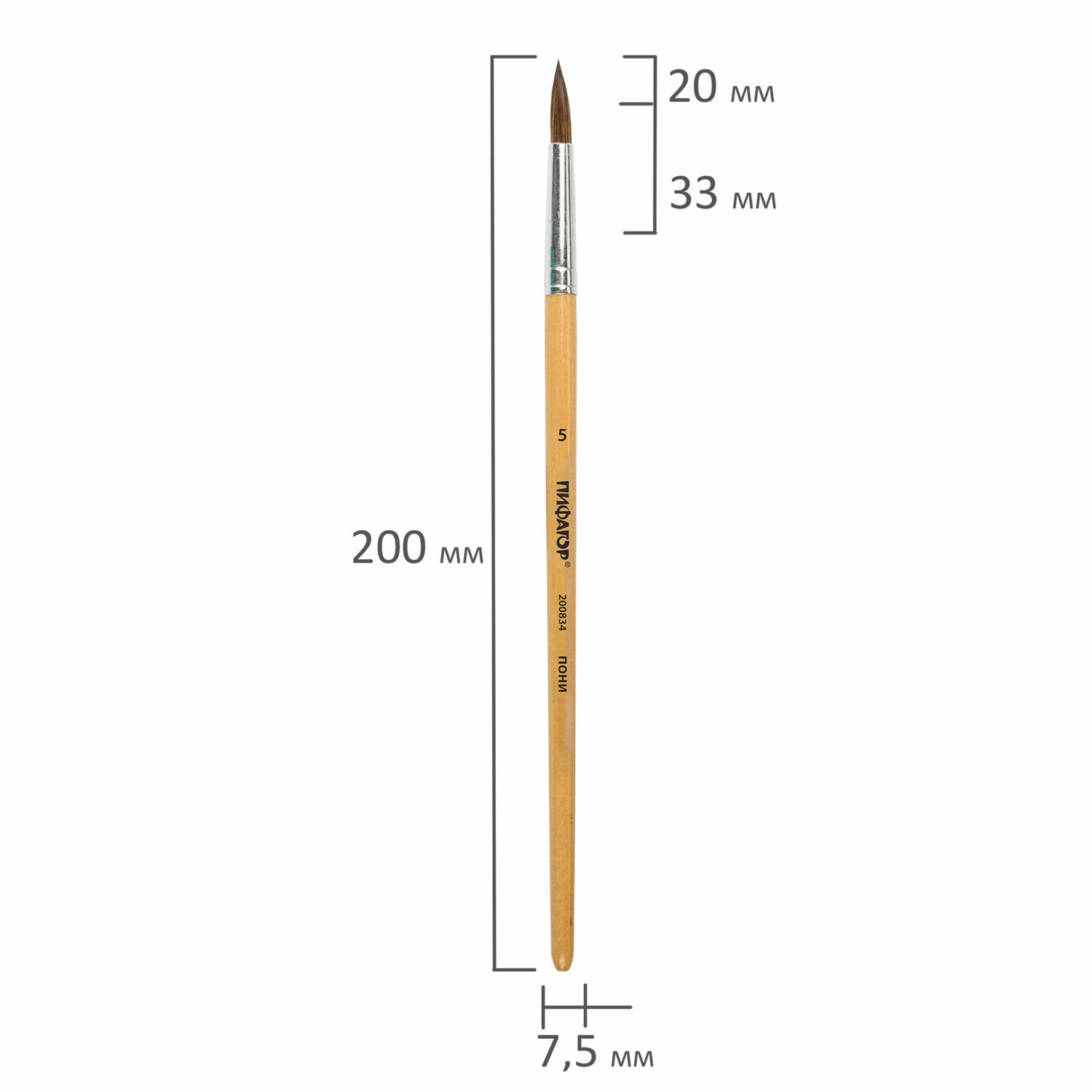 Кисть ПИФАГОР, ПОНИ, круглая, № 5, деревянная лакированная ручка, с колпачком, 200834