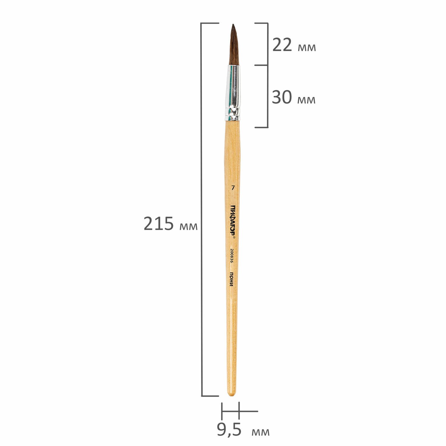 Кисть ПИФАГОР, ПОНИ, круглая, № 7, деревянная лакированная ручка, колпачок, пакет с подвесом, 200836