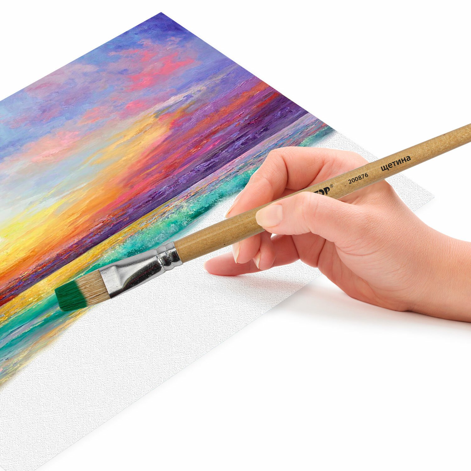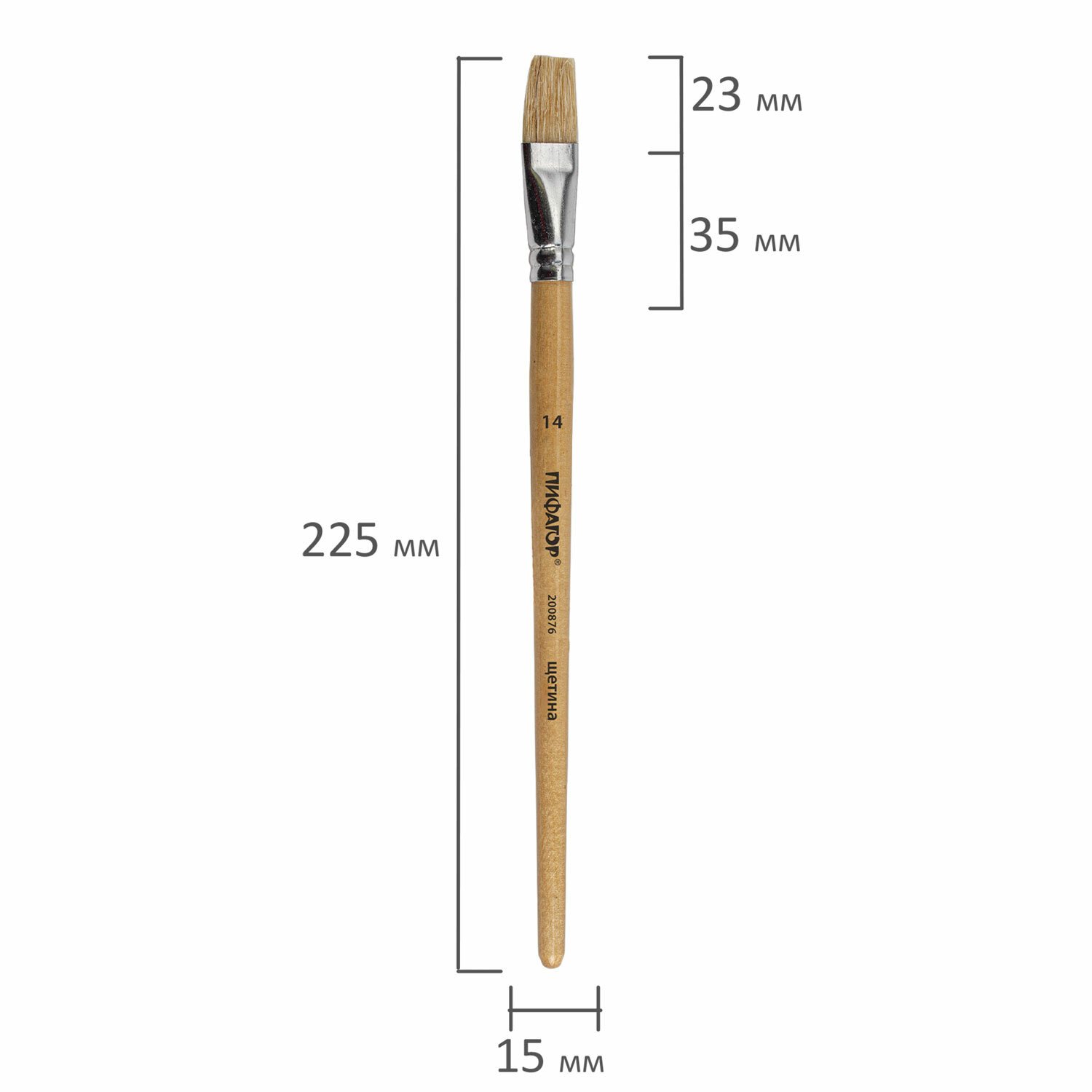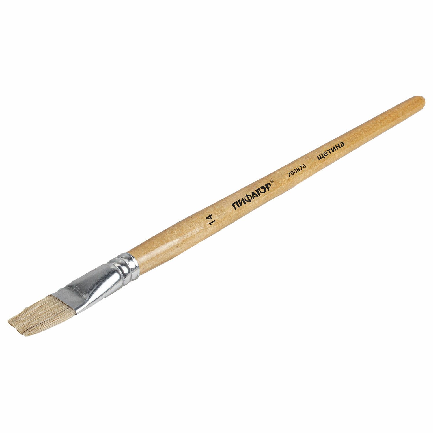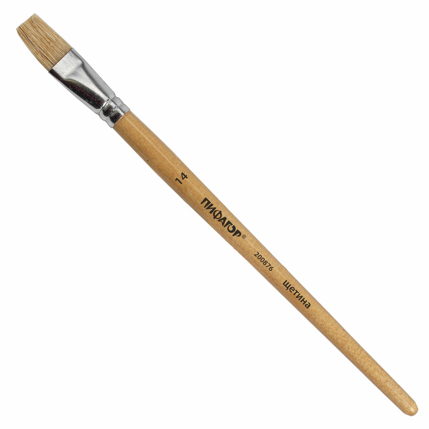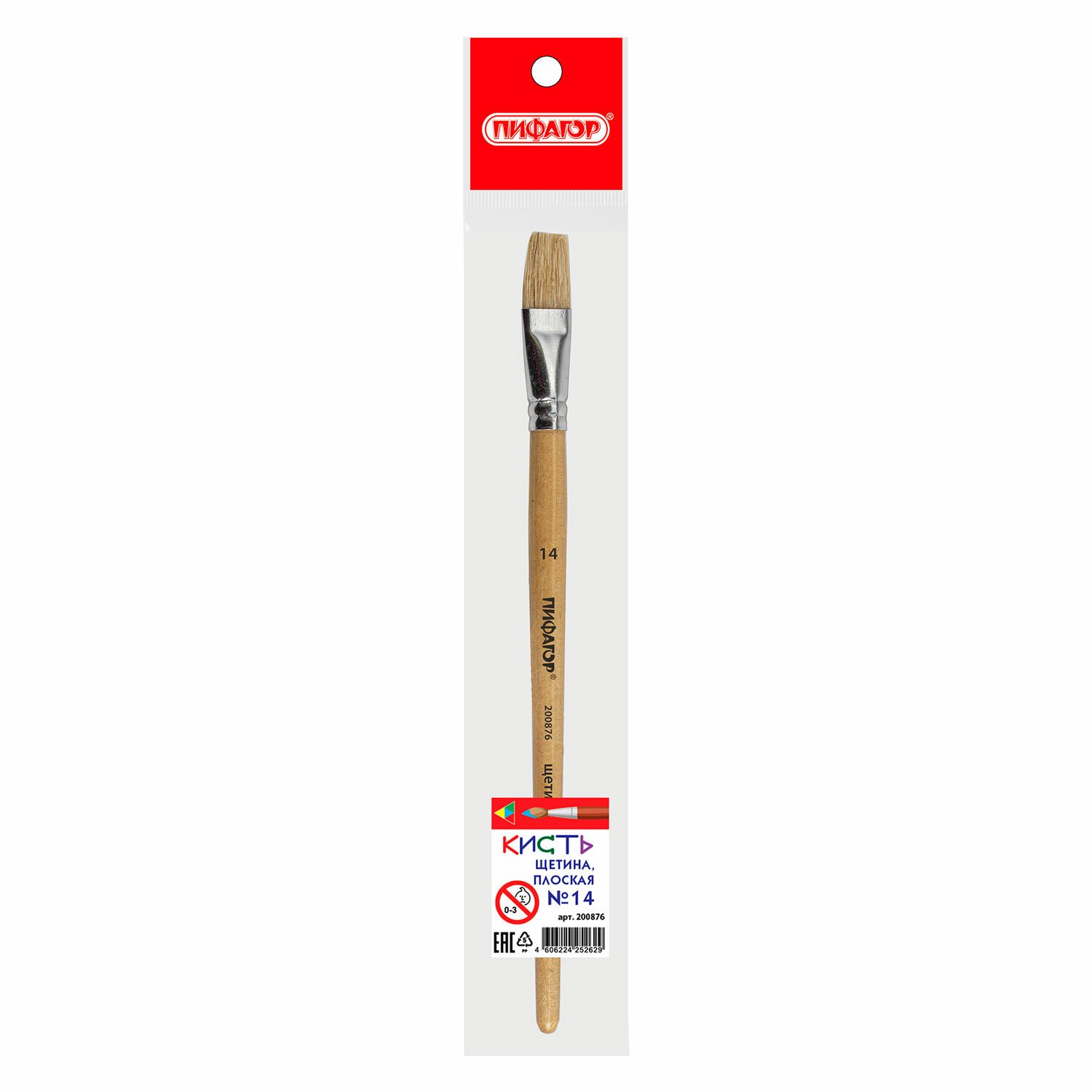 Кисть ПИФАГОР, ЩЕТИНА, плоская, № 14, деревянная лакированная ручка, пакет с подвесом, 200876