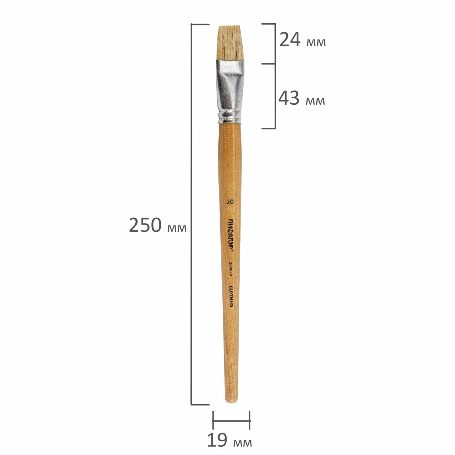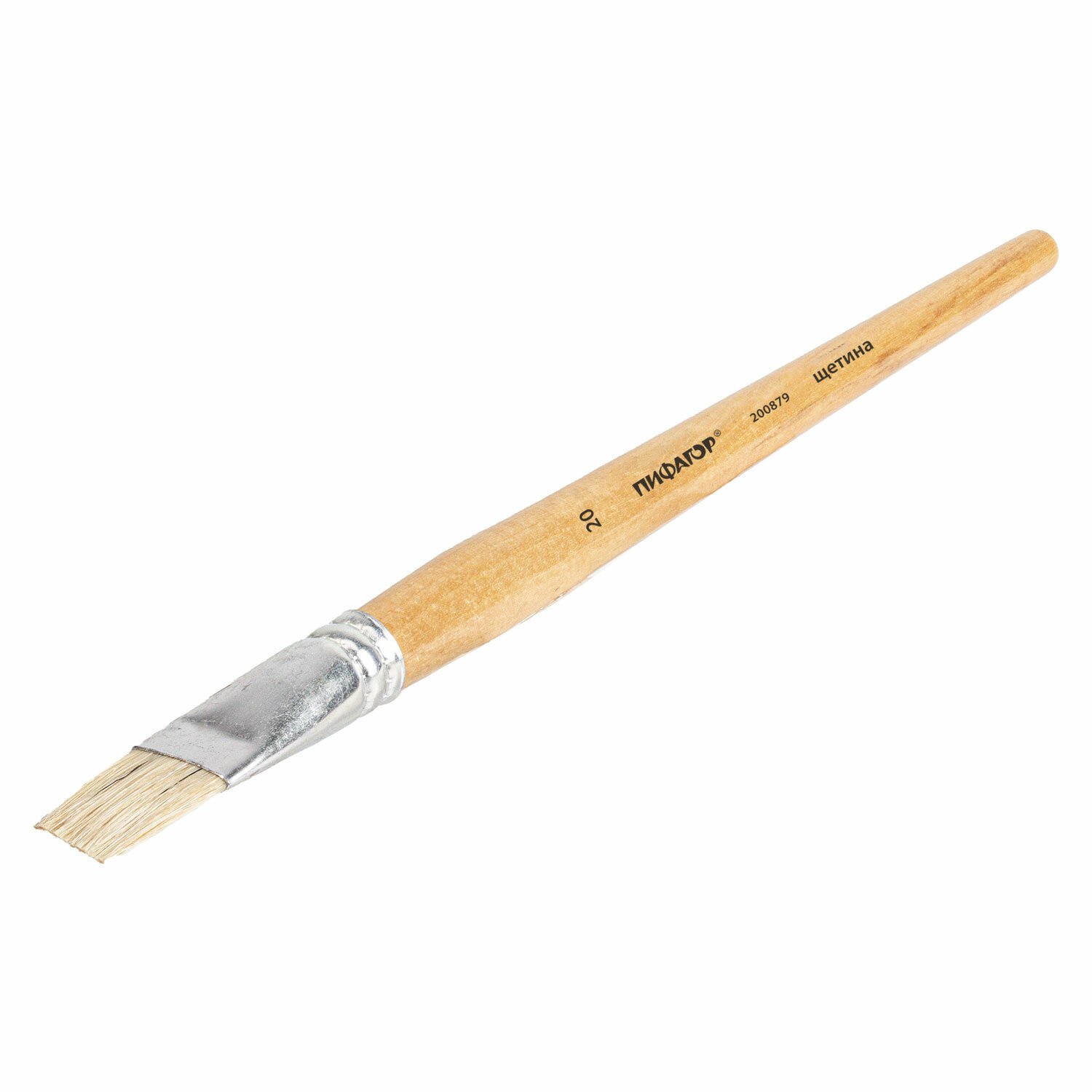 Кисть ПИФАГОР, ЩЕТИНА, плоская, № 20, деревянная лакированная ручка, пакет с подвесом, 200879