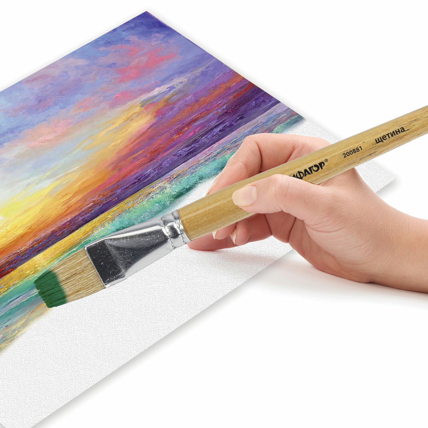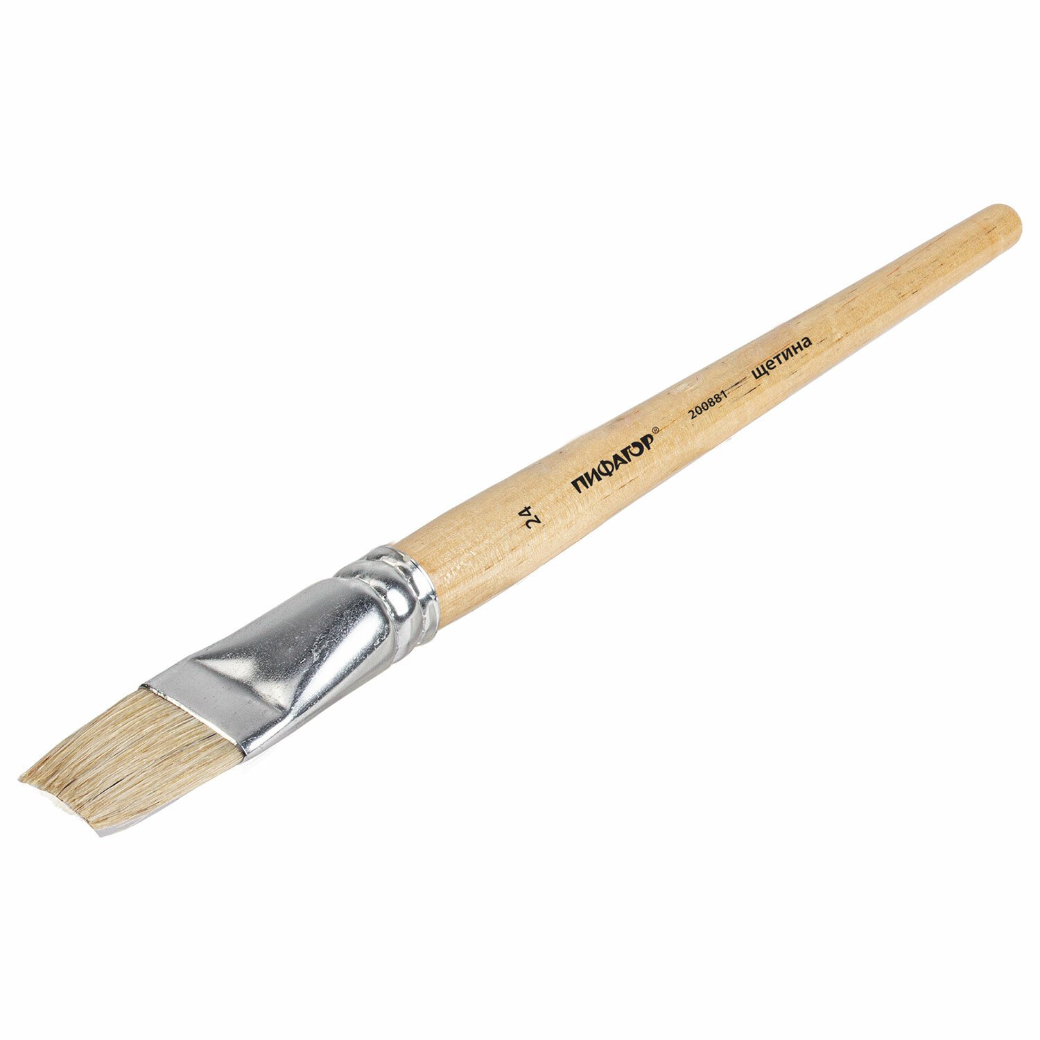 Кисть ПИФАГОР, ЩЕТИНА, плоская, № 24, деревянная лакированная ручка, пакет с подвесом, 200881