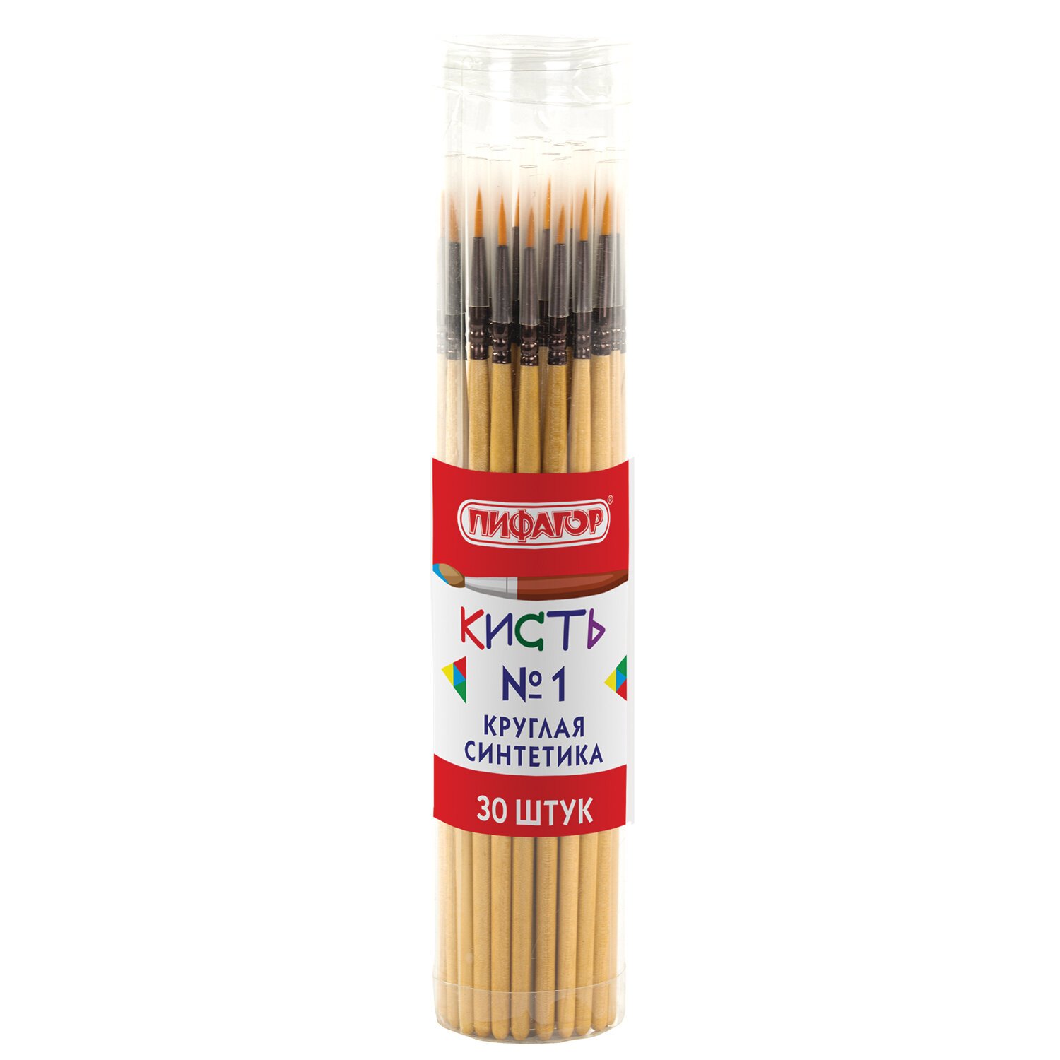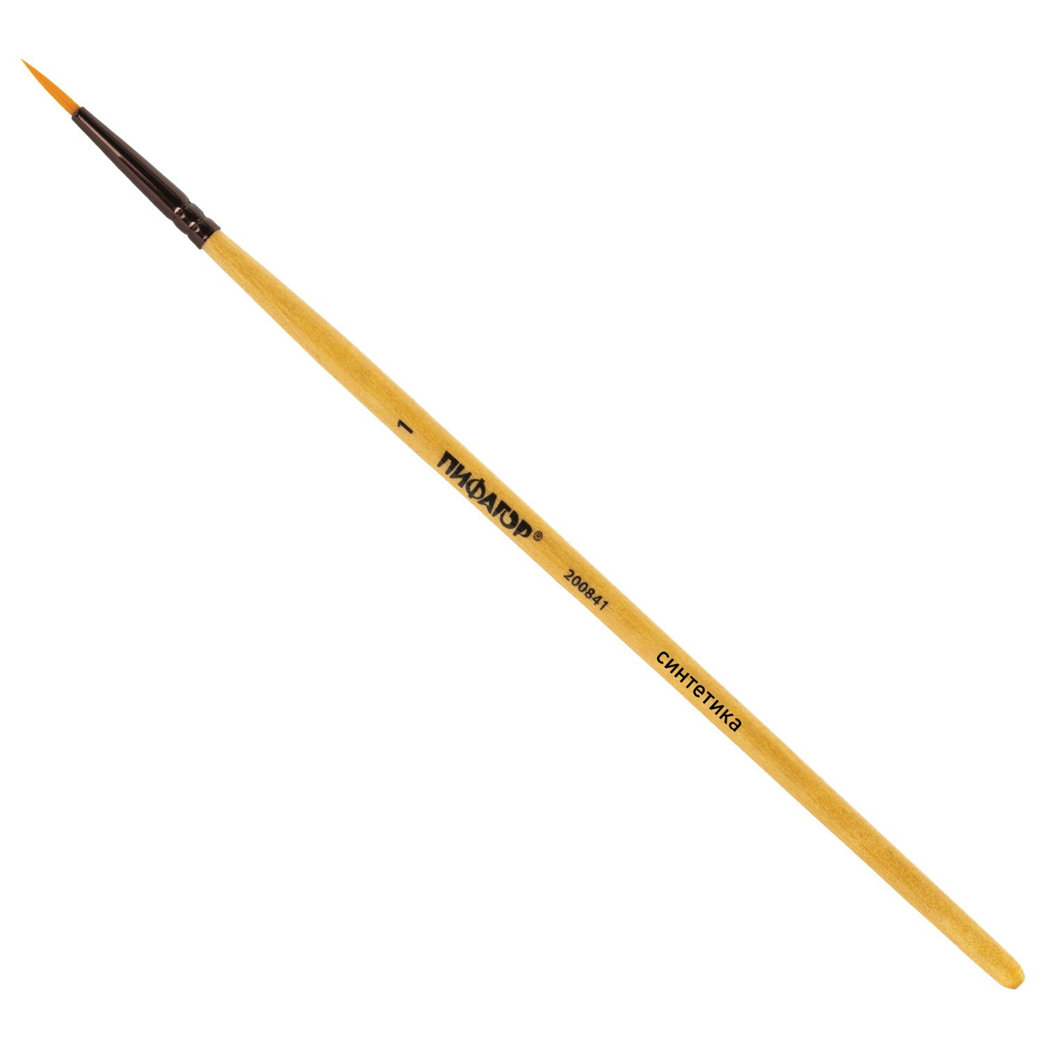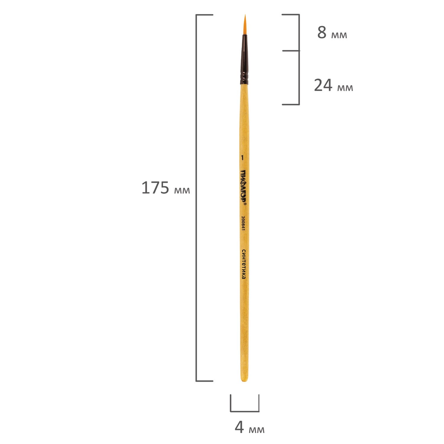 Кисть ПИФАГОР, СИНТЕТИКА, круглая, № 1, деревянная лакированная ручка, с колпачком, 200841