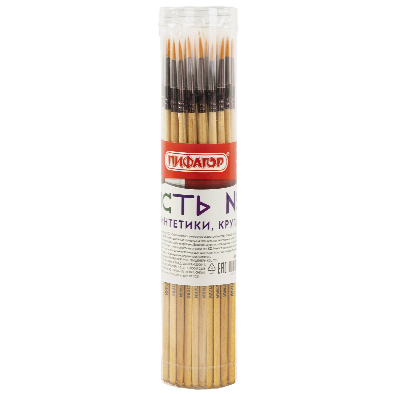 Кисть ПИФАГОР, СИНТЕТИКА, круглая, № 5, деревянная лакированная ручка, с колпачком, 200845