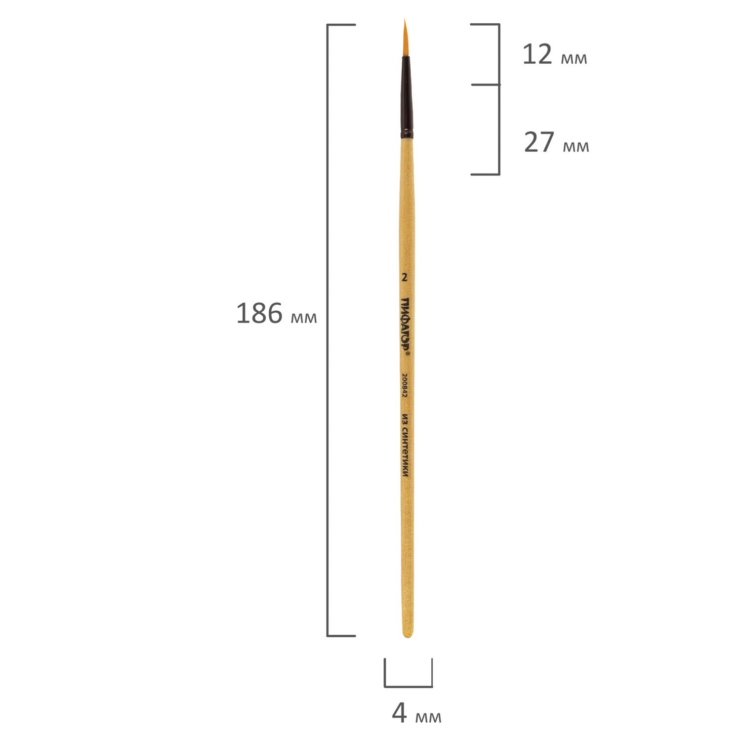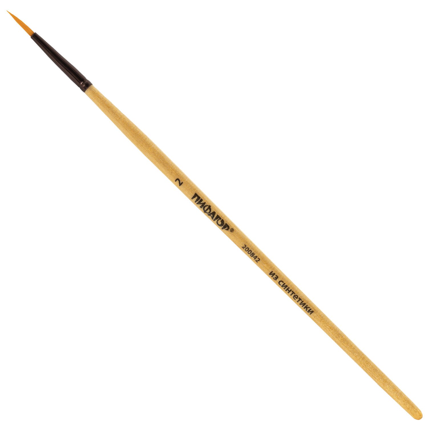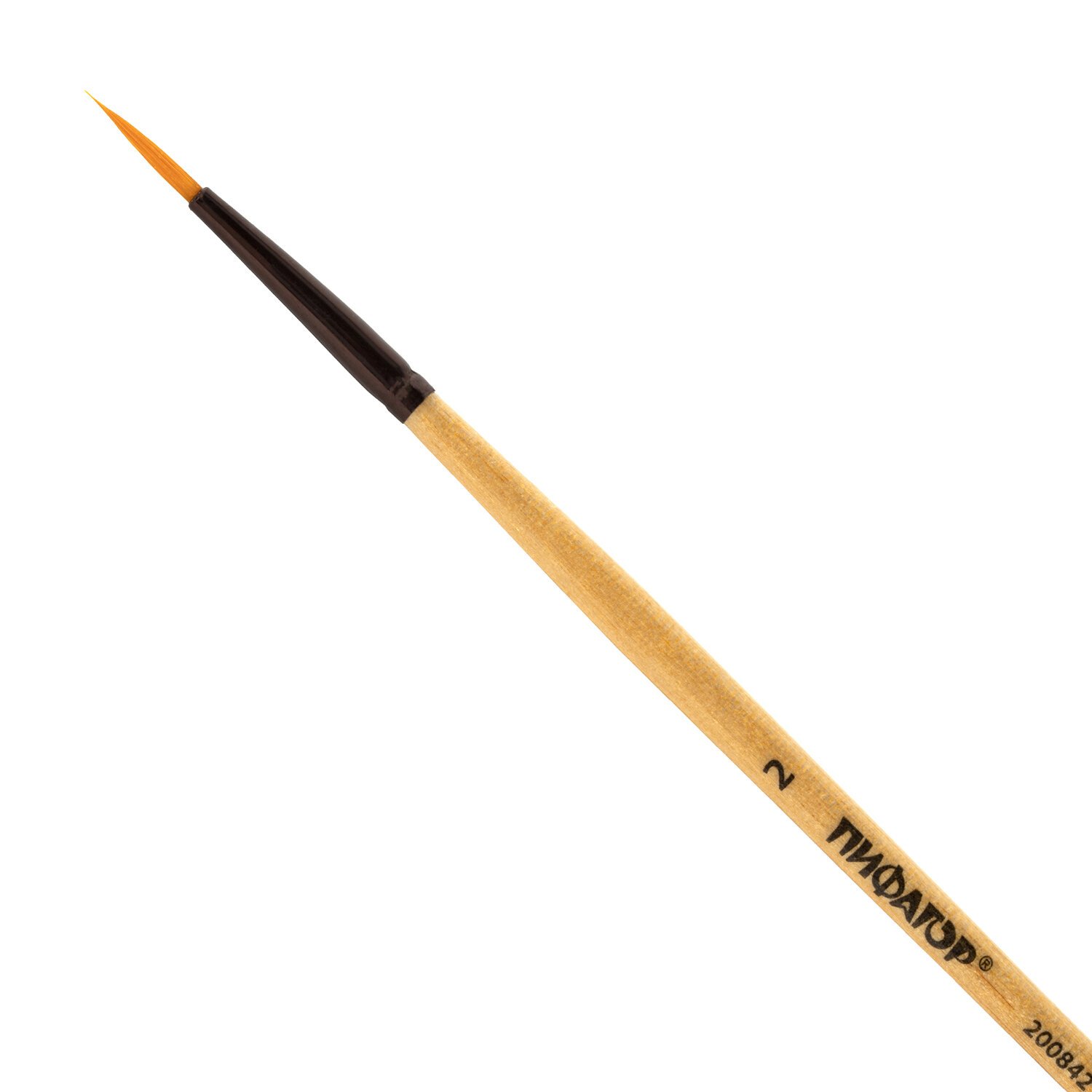 Кисть ПИФАГОР, СИНТЕТИКА, круглая, № 2, деревянная лакированная ручка, с колпачком, 200842
