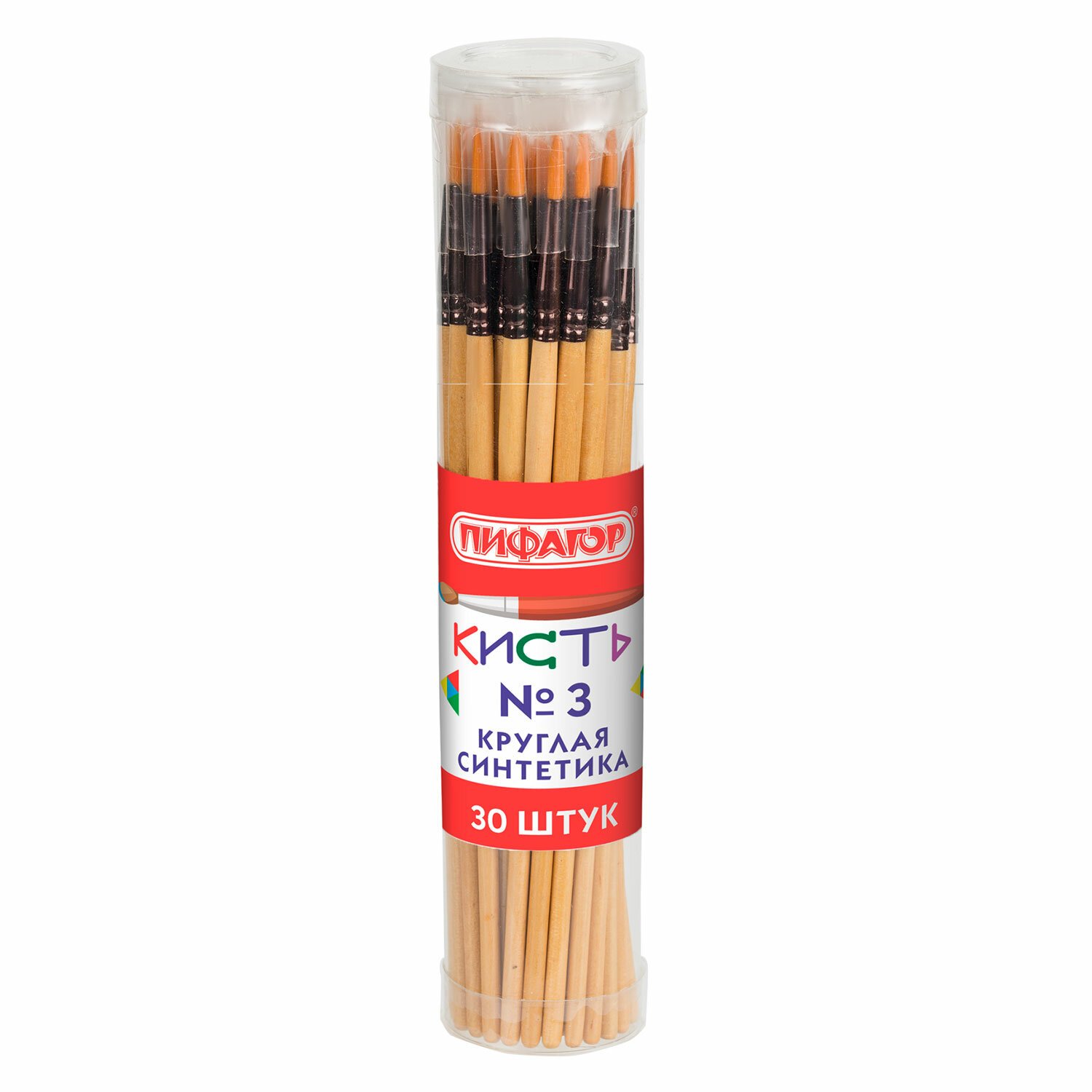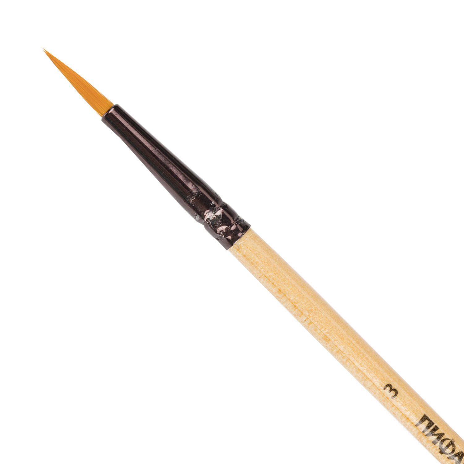 Кисть ПИФАГОР, СИНТЕТИКА, круглая, № 3, деревянная лакированная ручка, с колпачком, 200843