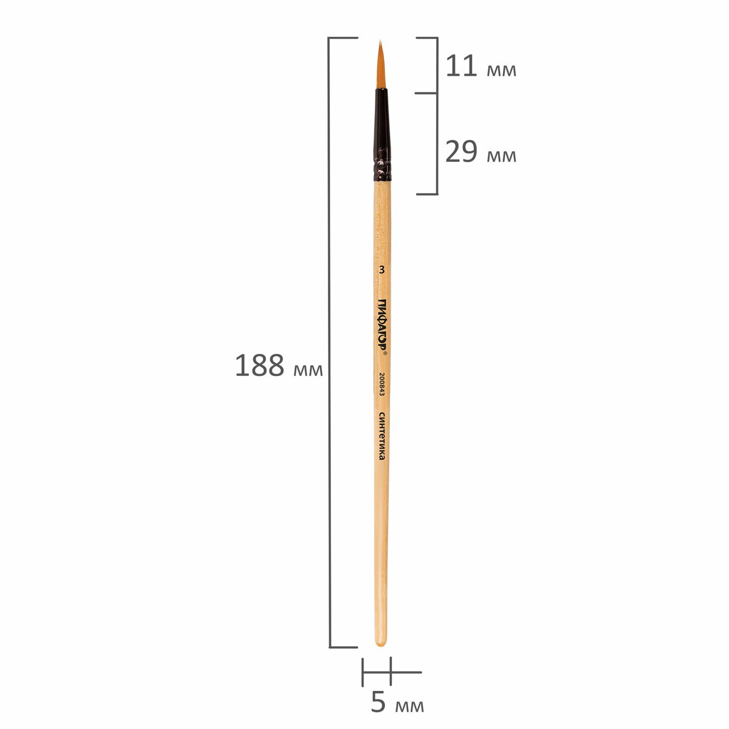 Кисть ПИФАГОР, СИНТЕТИКА, круглая, № 5, деревянная лакированная ручка, с колпачком, 200845