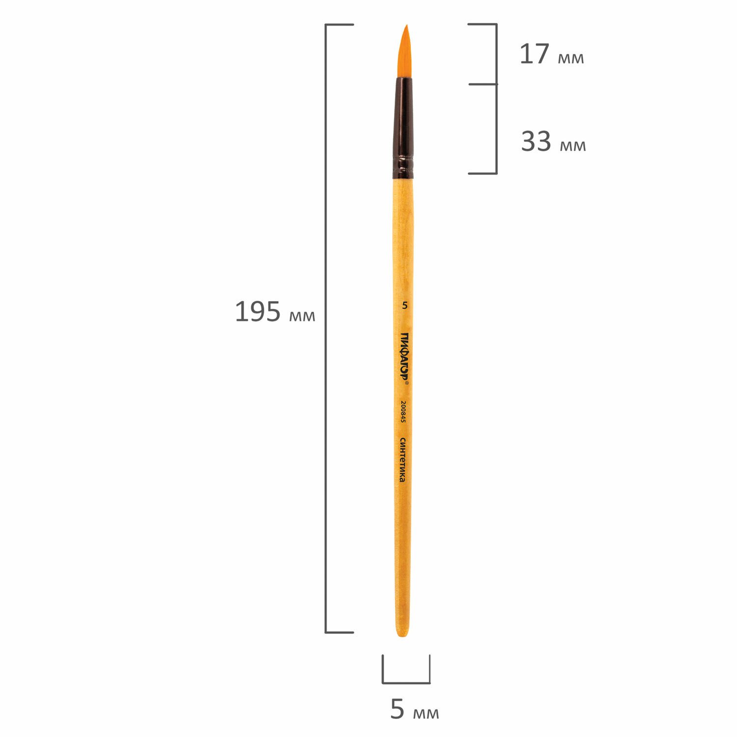 Кисть ПИФАГОР, СИНТЕТИКА, круглая, № 5, деревянная лакированная ручка, с колпачком, 200845