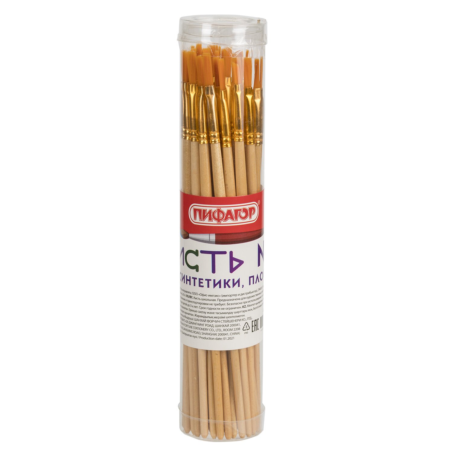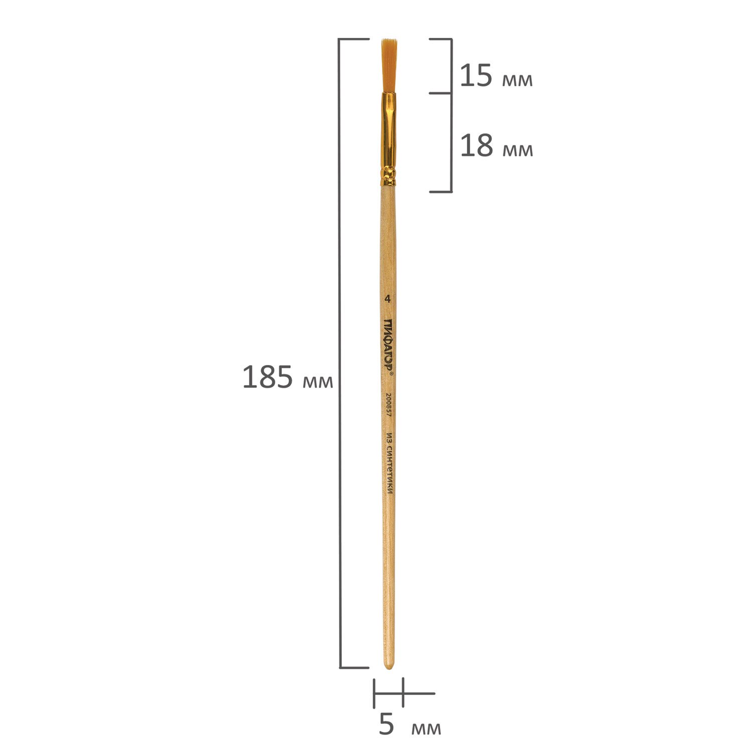 Кисть ПИФАГОР, СИНТЕТИКА, плоская, № 4, деревянная лакированная ручка, с колпачком, 200857