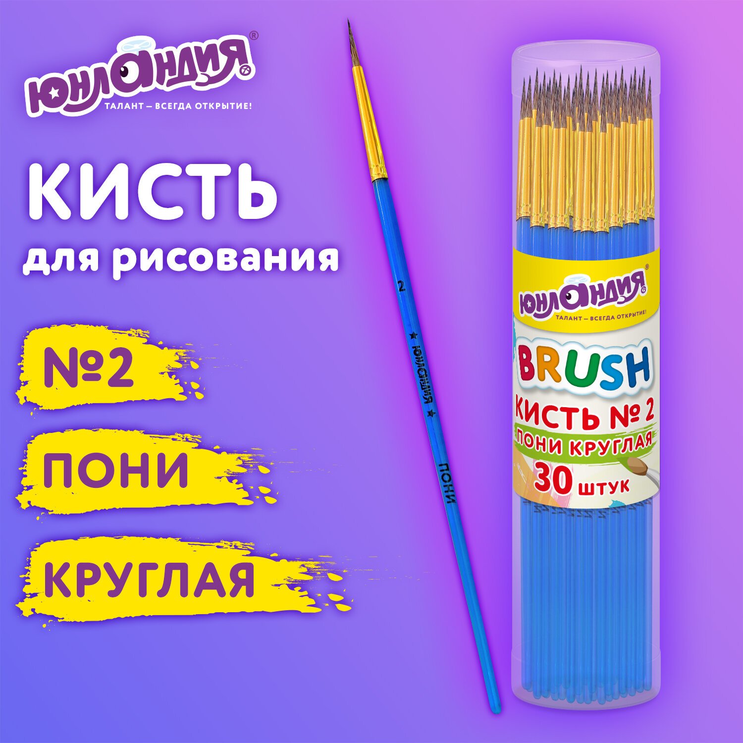 Кисть ПОНИ, круглая, № 2, цветная ручка, ЮНЛАНДИЯ, 201061