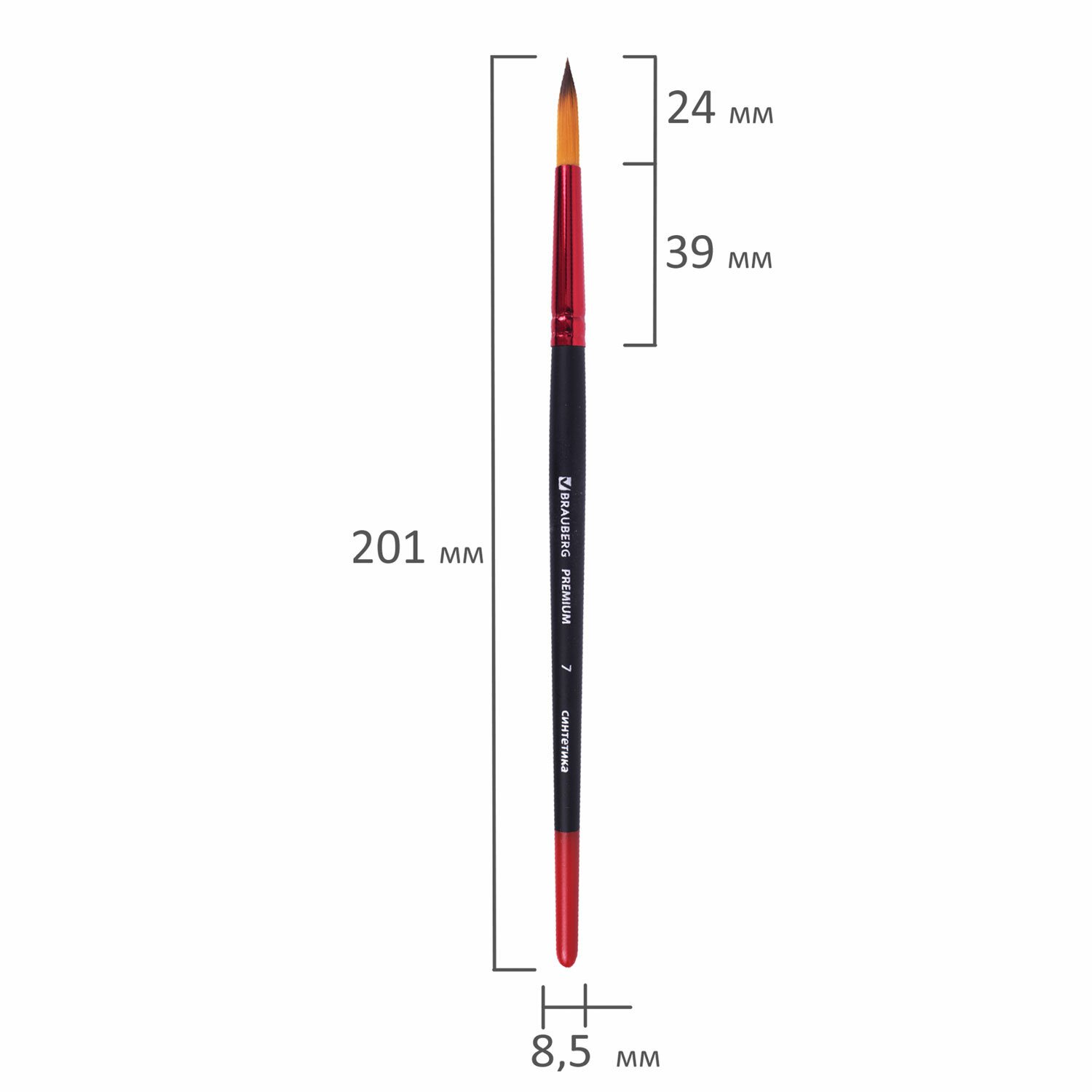 Кисть синтетика, круглая № 7, BRAUBERG PREMIUM, 201006