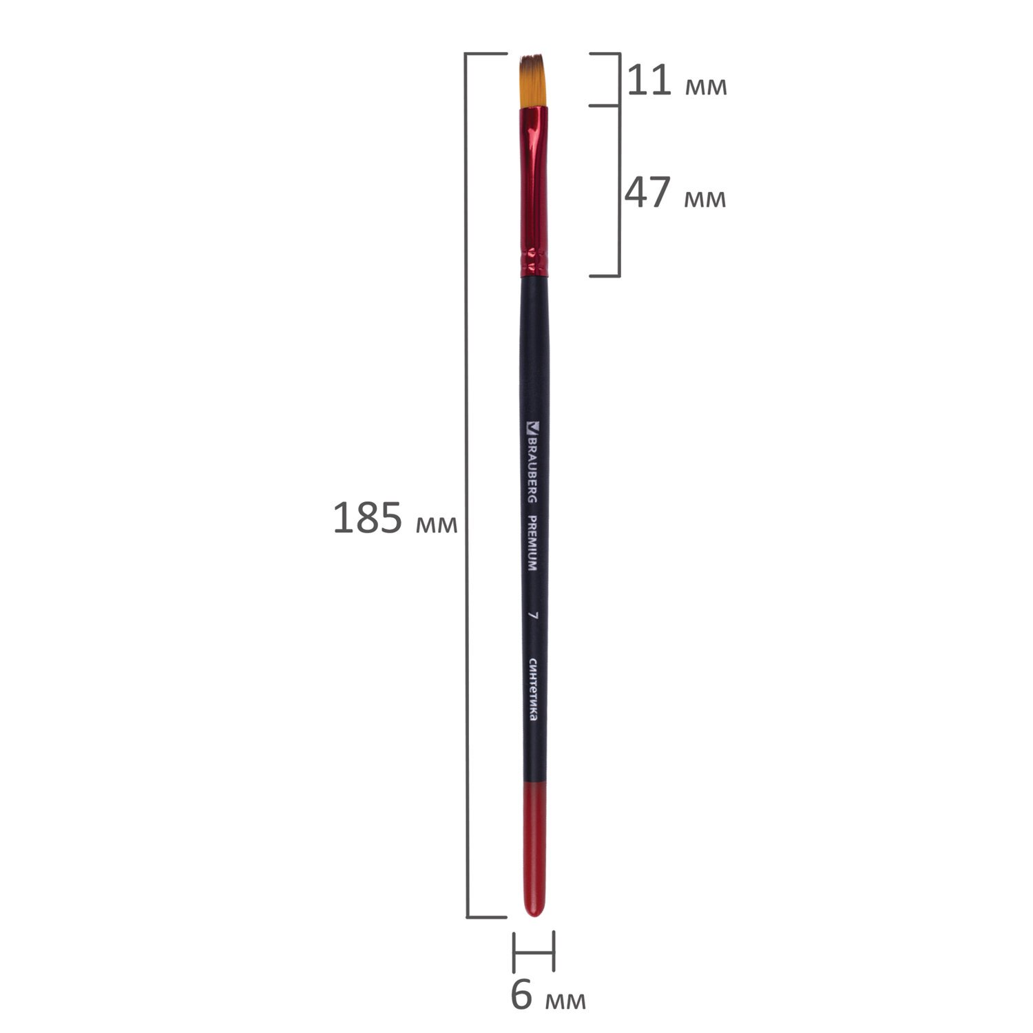 Кисть синтетика, плоская № 7, BRAUBERG PREMIUM, 201016