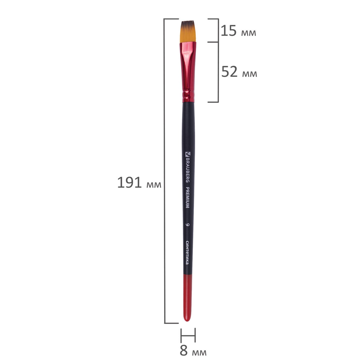 Кисть синтетика, плоская № 9, BRAUBERG PREMIUM, 201018