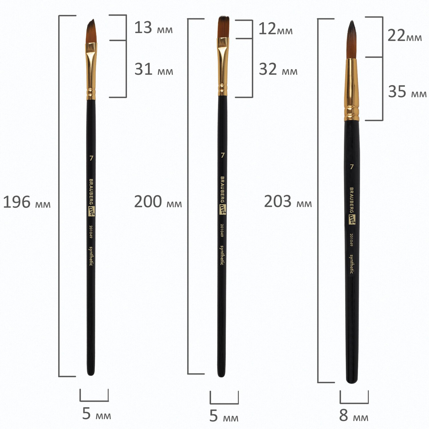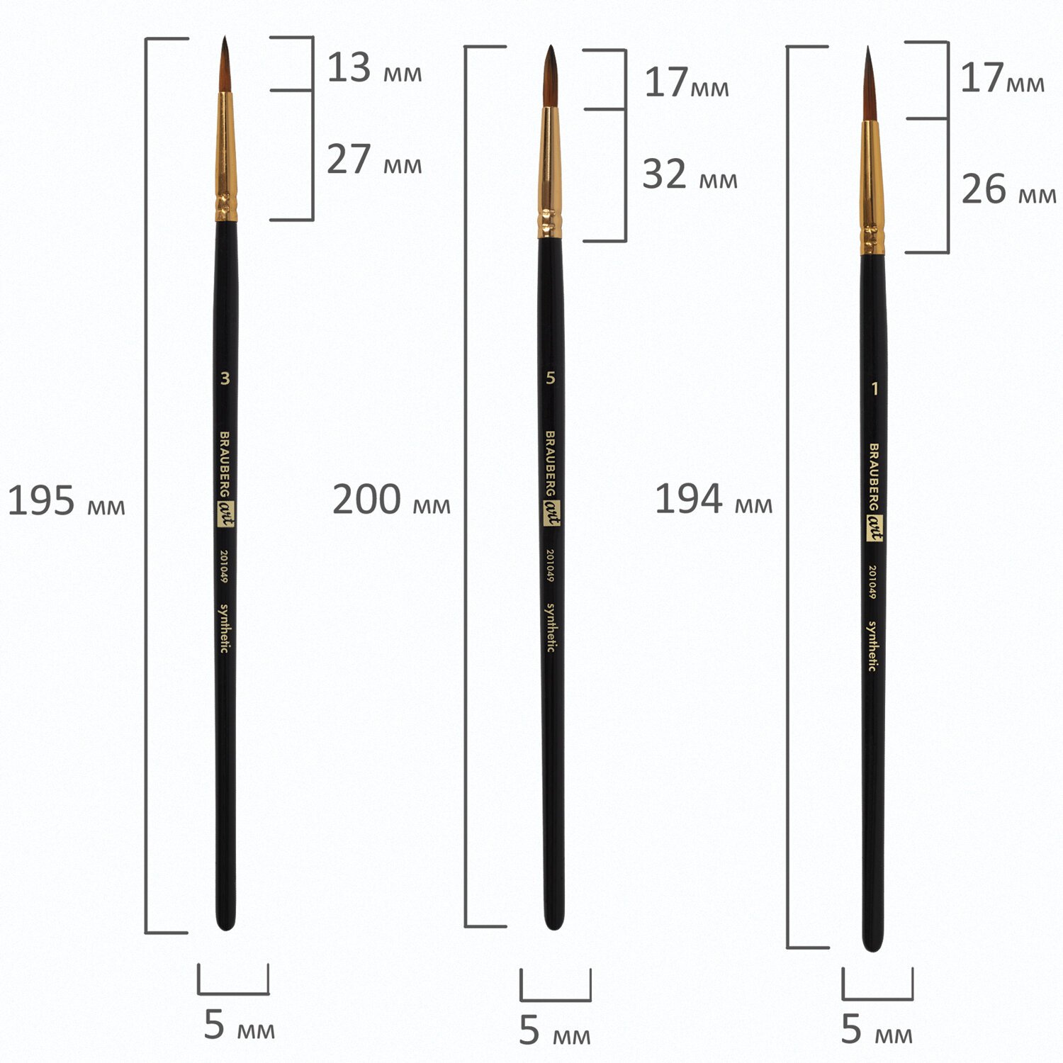Кисти художественные набор 3 шт., синтетика (круглые № 4, 6,8), BRAUBERG ART DEBUT, 201039