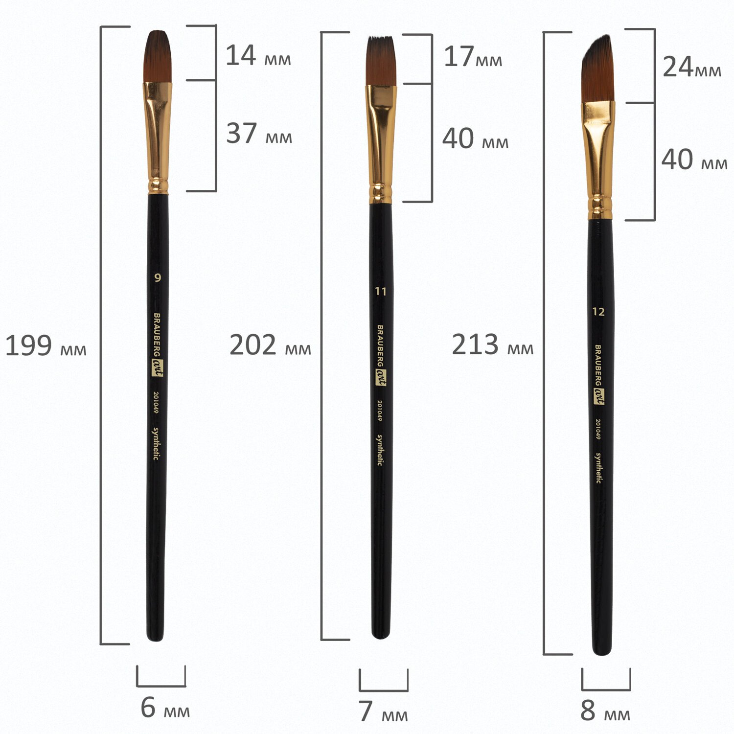Кисти художественные набор 12 шт., синтетика, овальные № 1-12, BRAUBERG ART DEBUT, 201051