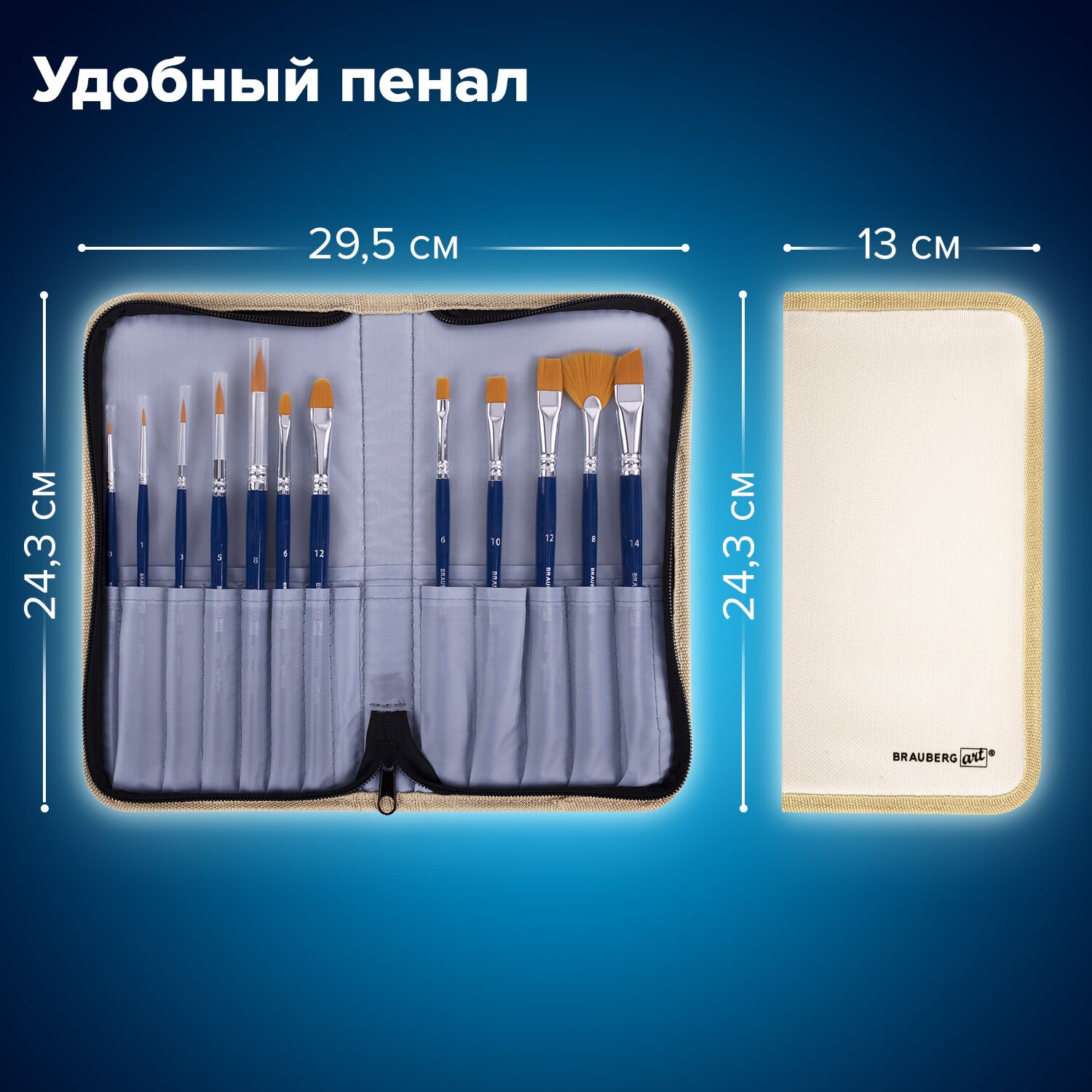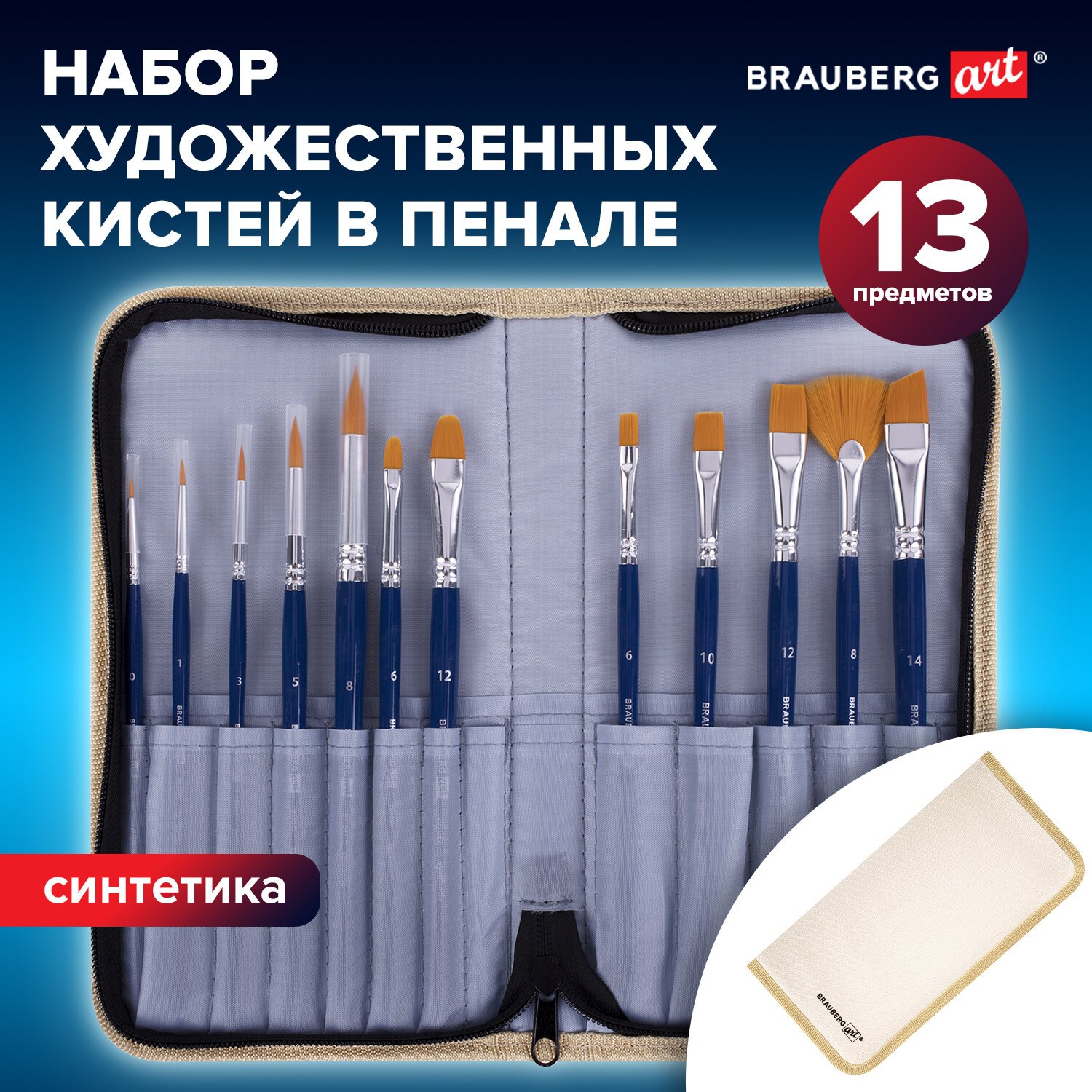 Кисти художественные набор 12 шт. в пенале, синтетика, BRAUBERG ART DEBUT, 201042