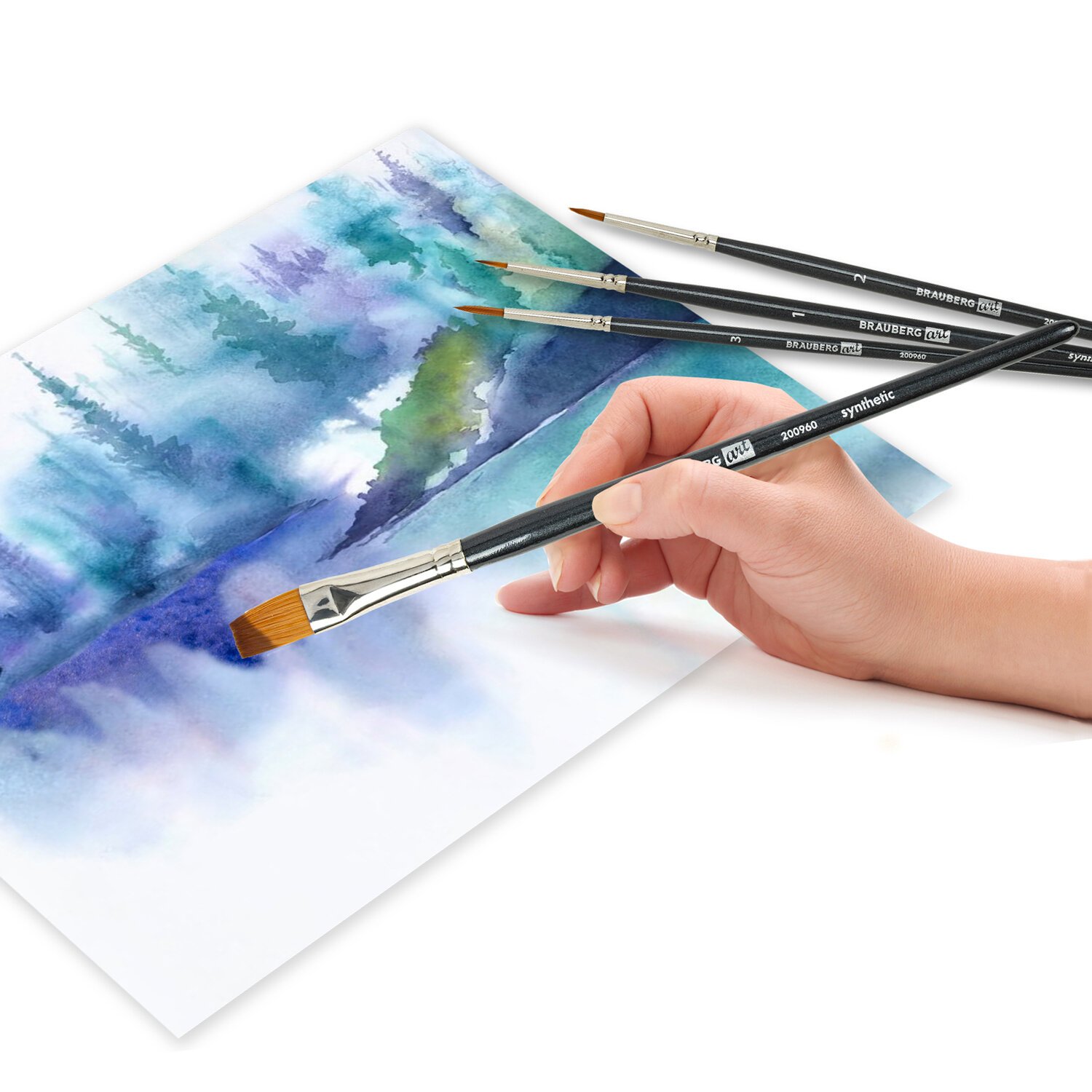 Кисти художественные набор 5 шт., синтетика, BRAUBERG ART CLASSIC, ЭРГОНОМИЧНЫЕ, 200950