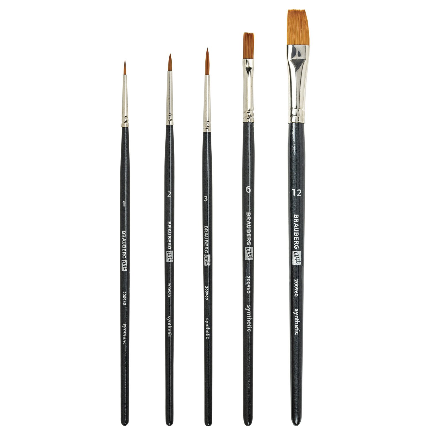 Кисти художественные набор 5 шт., синтетика, BRAUBERG ART CLASSIC, № 1-12, 200960