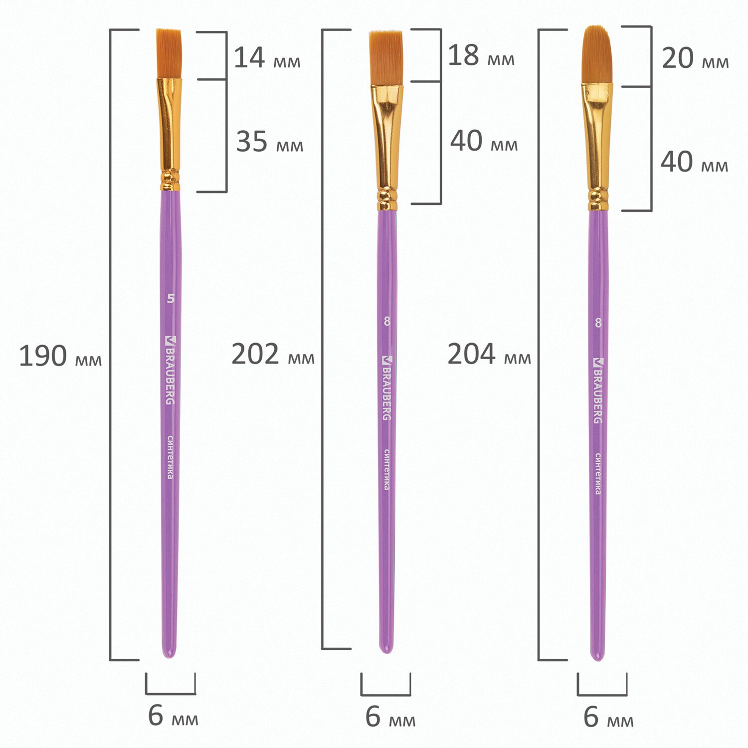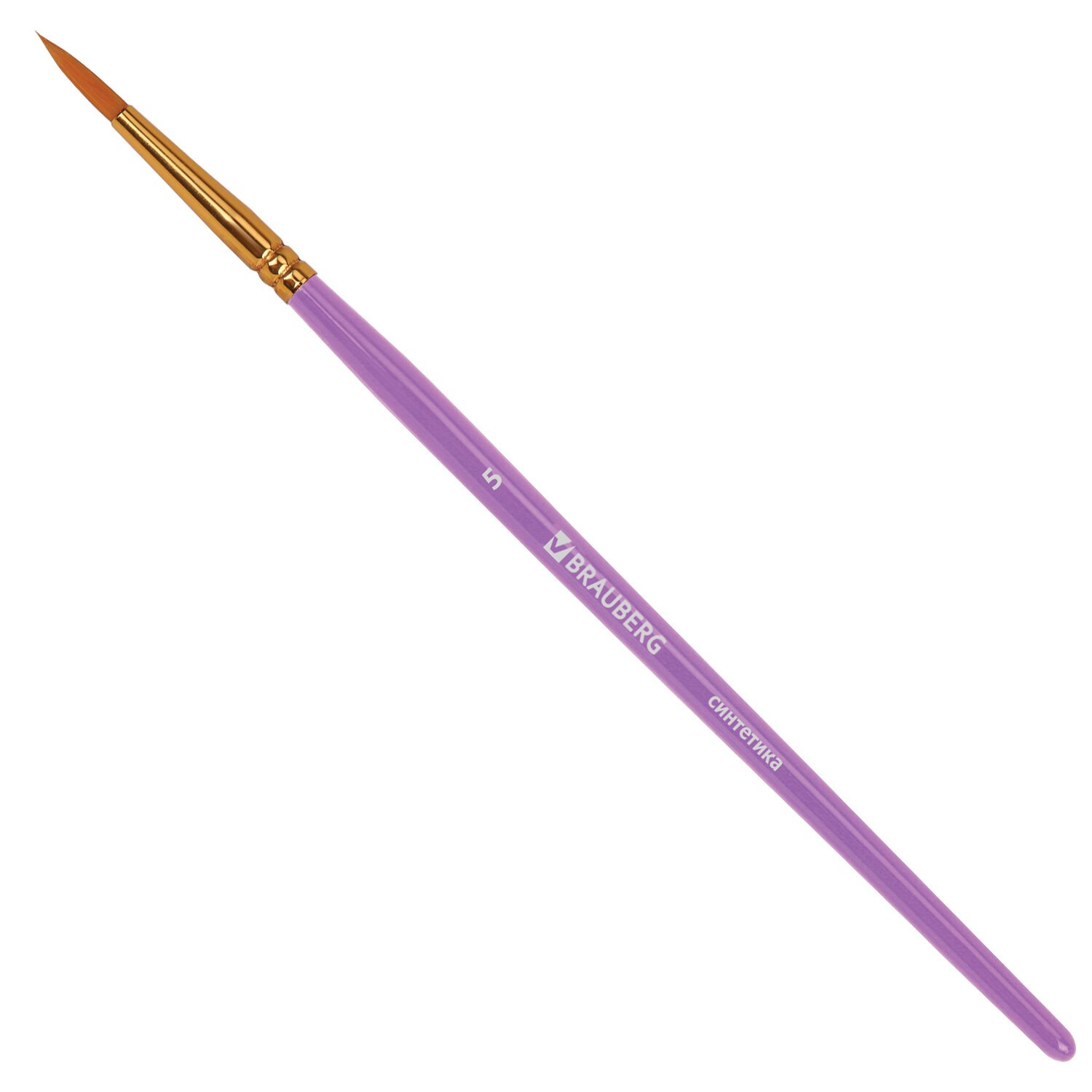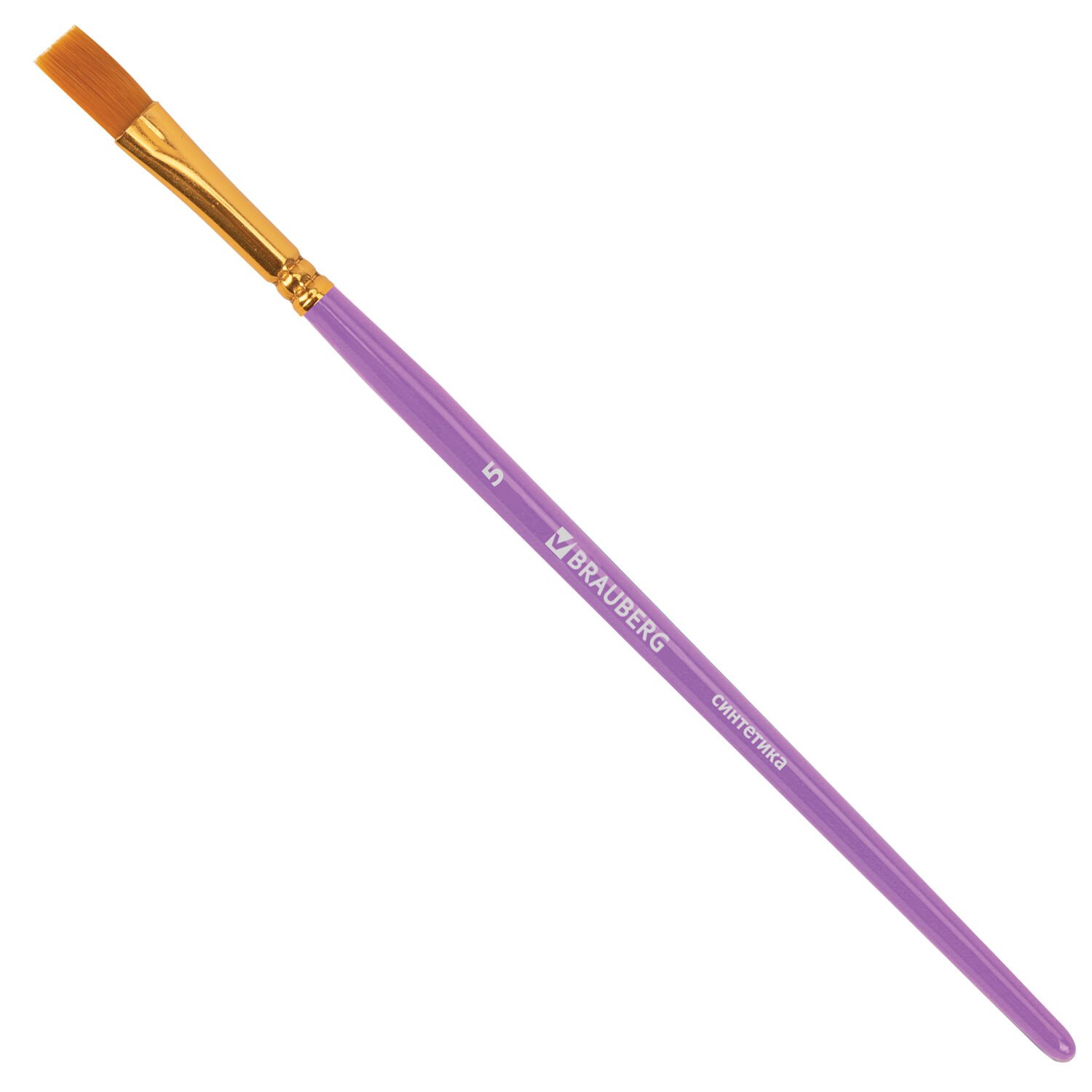 Кисти BRAUBERG, набор 5 шт. (синтетика, круглые № 1, 2, 5, плоские № 5, 8), блистер, 200219