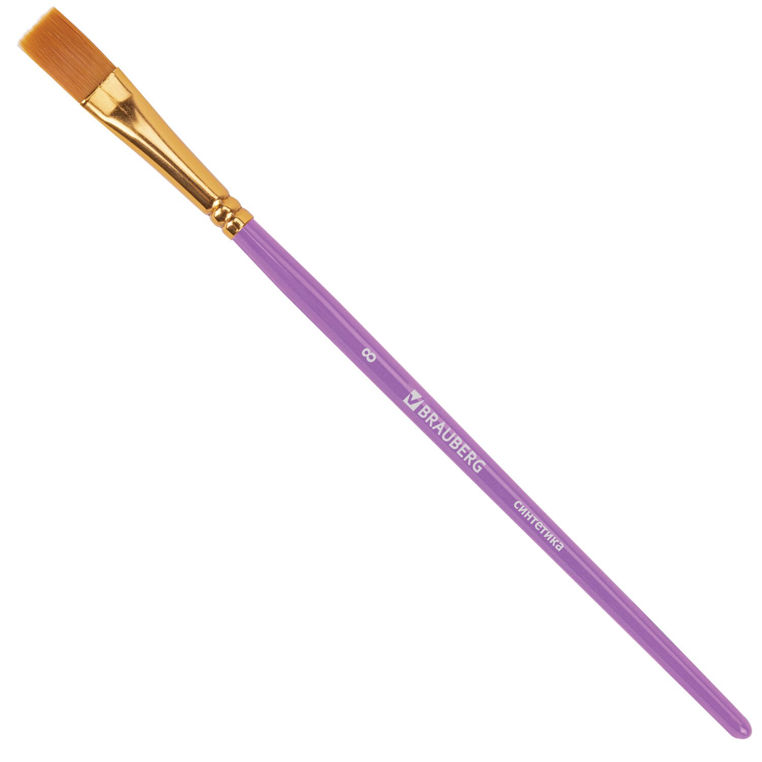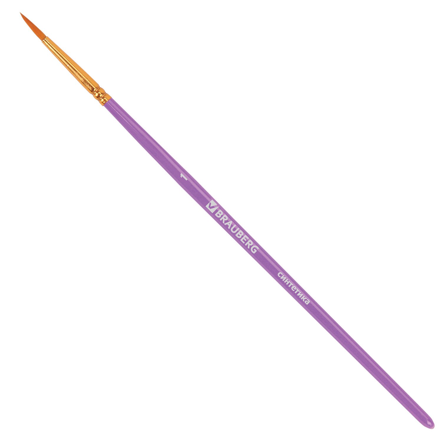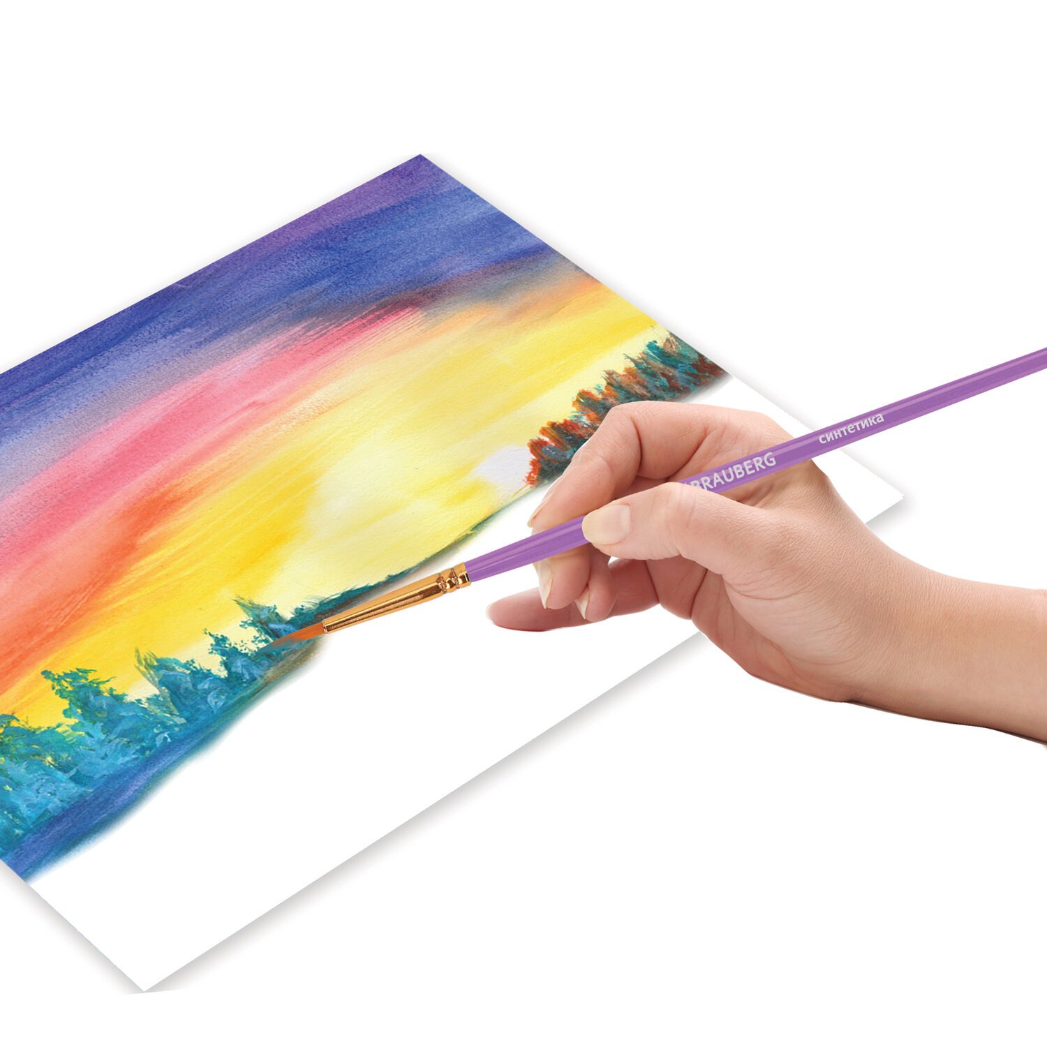 Кисти BRAUBERG, набор 5 шт. (синтетика, круглые № 1, 2, 5, плоские № 5, 8), блистер, 200219